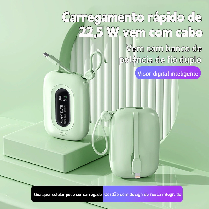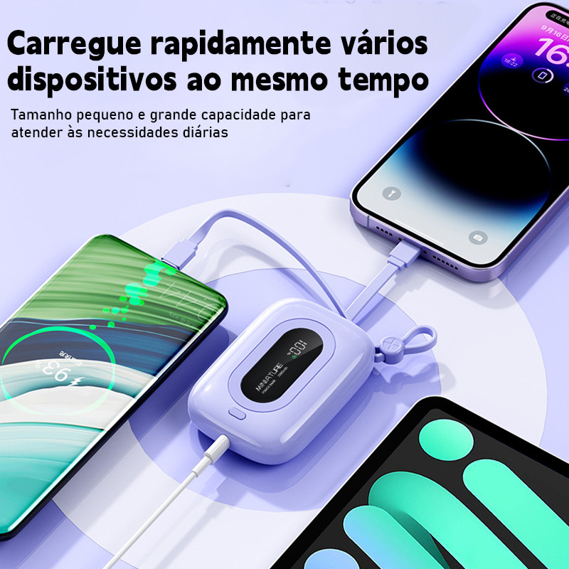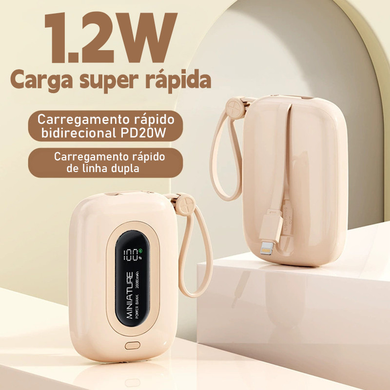 Power bank de 12.000 mAh carrega super rápido possui USB universal é compacto portátil e com exibidor numérico.