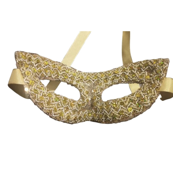 Kit 2 Máscaras luxo veneziana paetê adulto Carnaval dourado fita amarrada