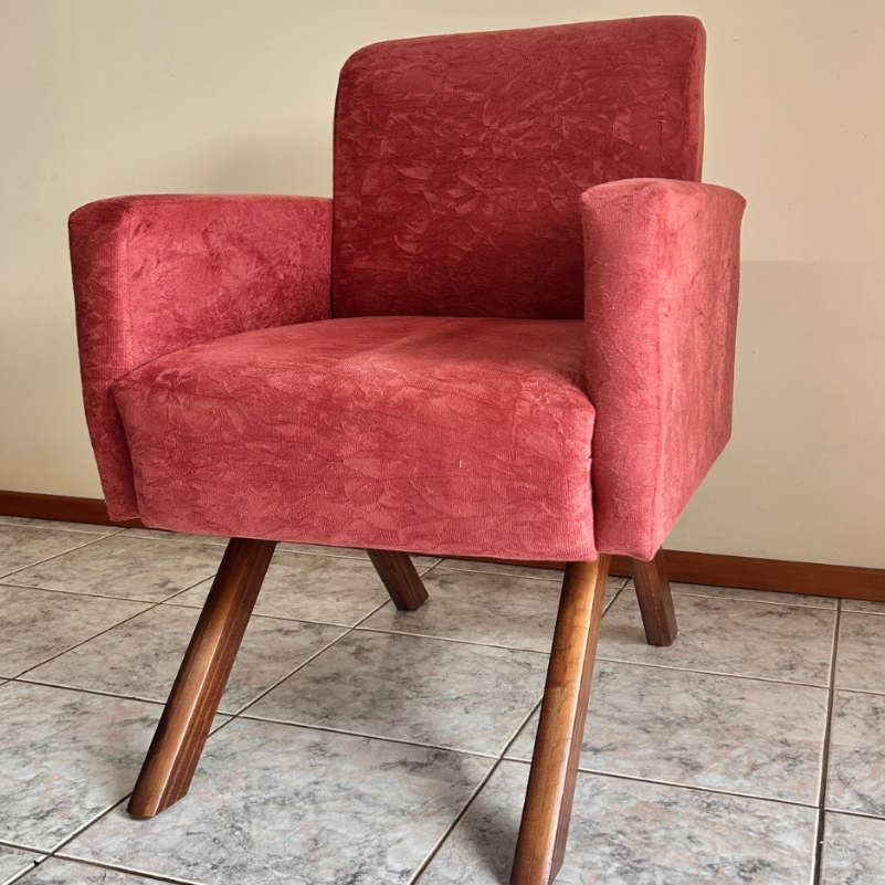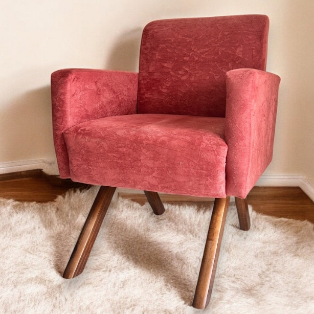 Poltrona Cadeira Decorativa com Pés em Madeira Palito Suede Macia Cor Terracota Sala de Estar