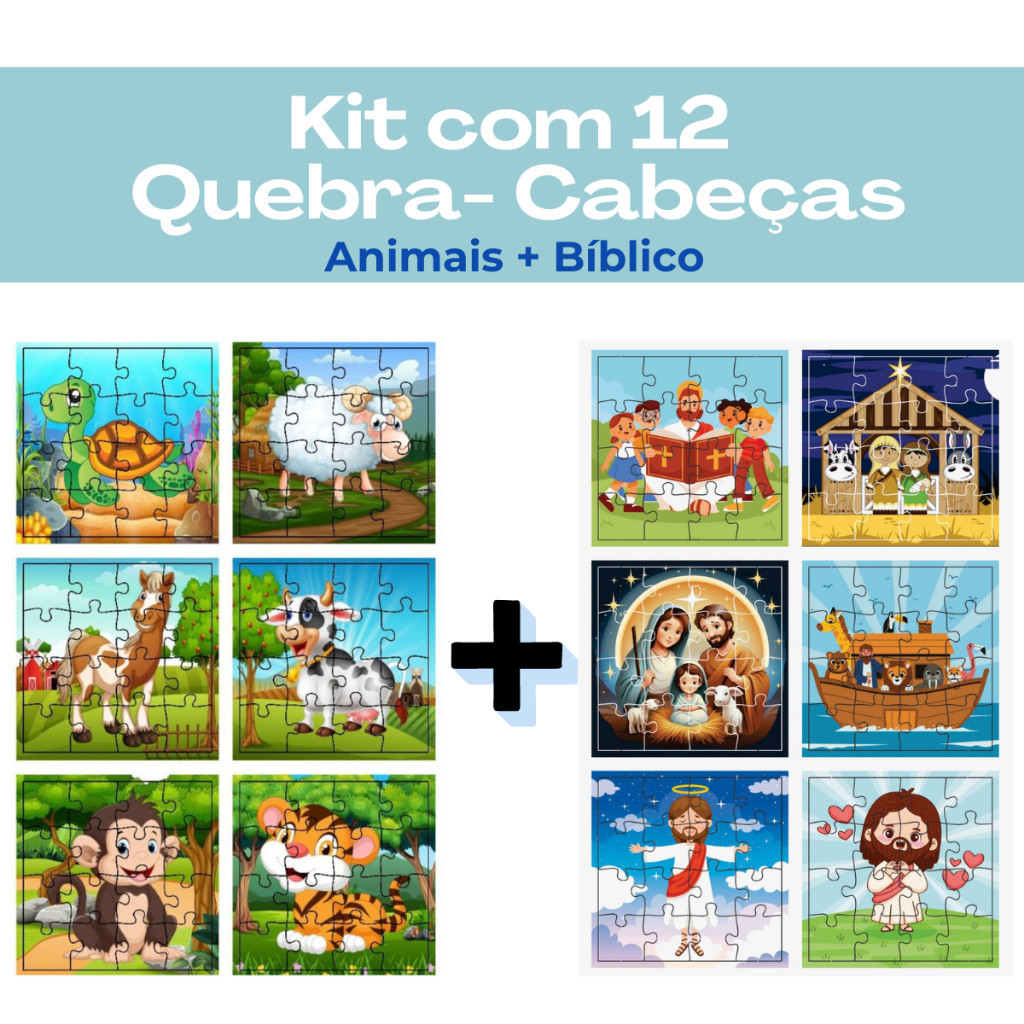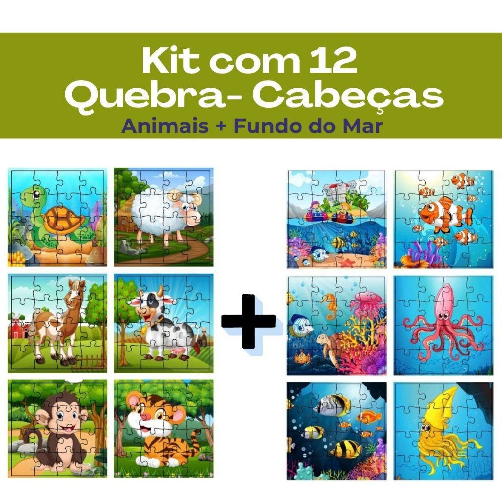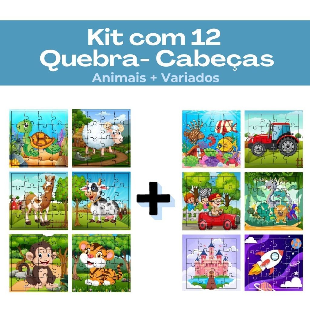 Kit 12 jogos quebra cabeça infantil em madeira mdf 16 peças cada (12 unidades)