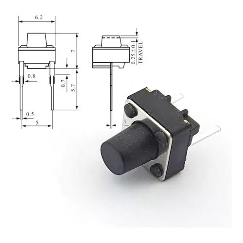 Chave Táctil 6x6x7mm 2 Terminais 180º