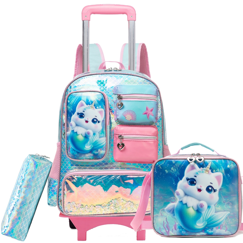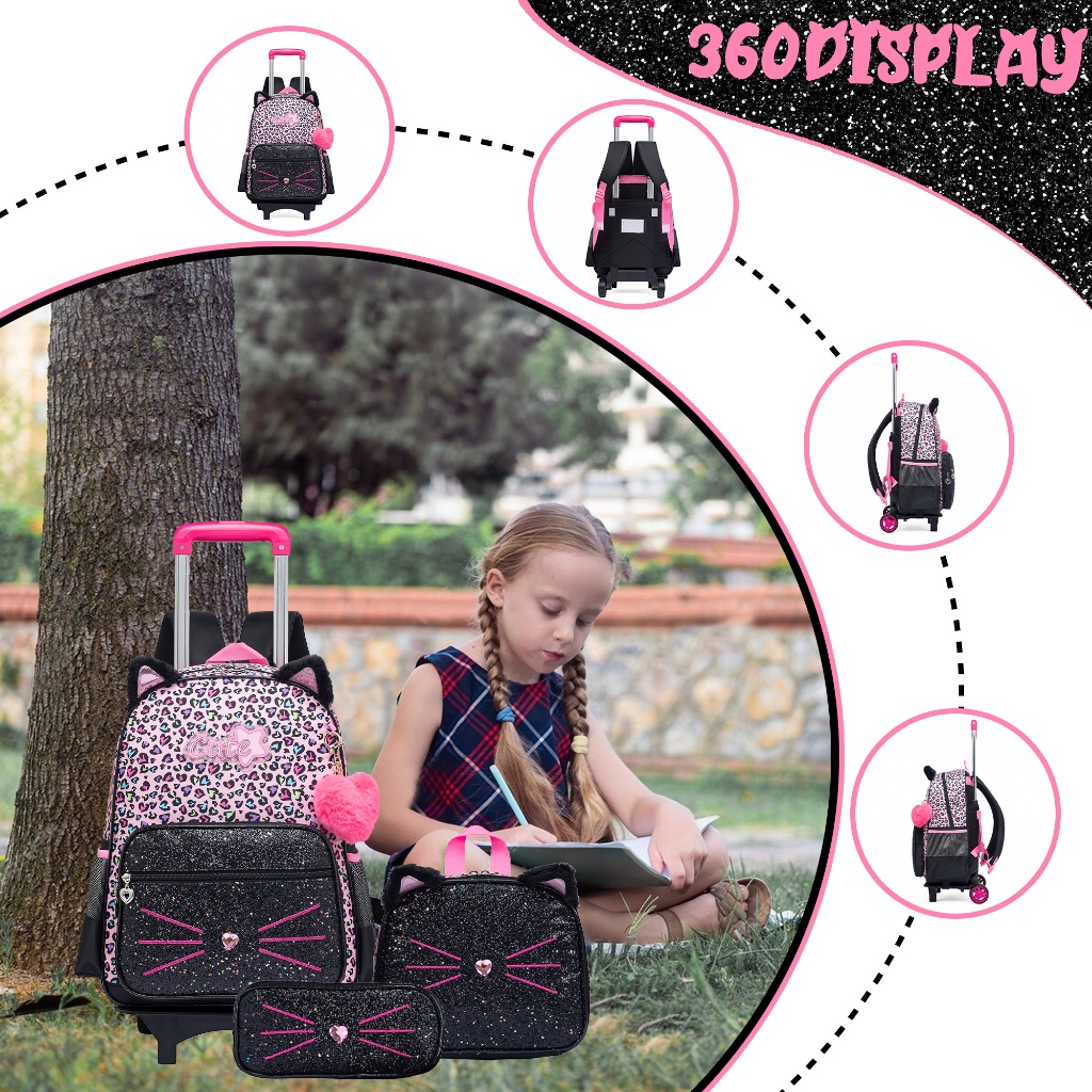 Mochila Infantil Menina Mochilas Rodinha Mochila Bordo Kit Casual Infantis Gato Malhado