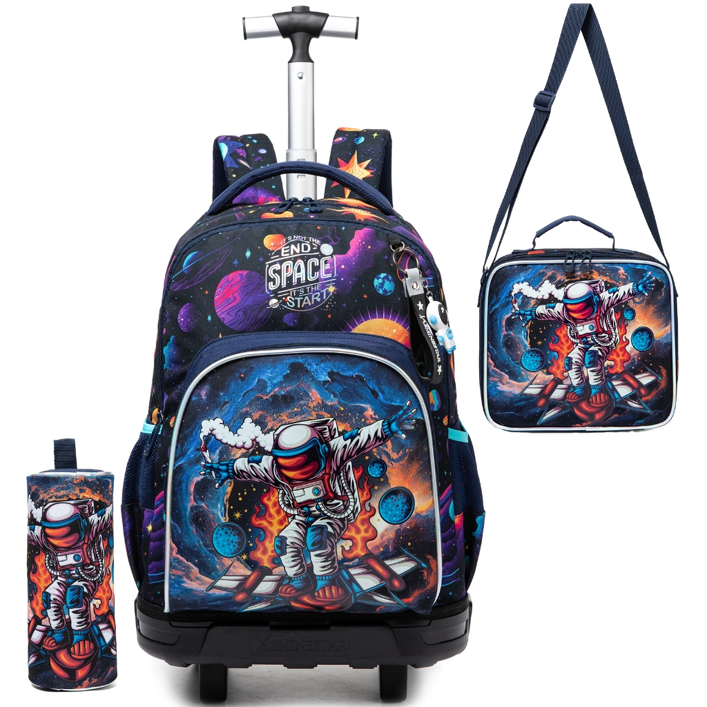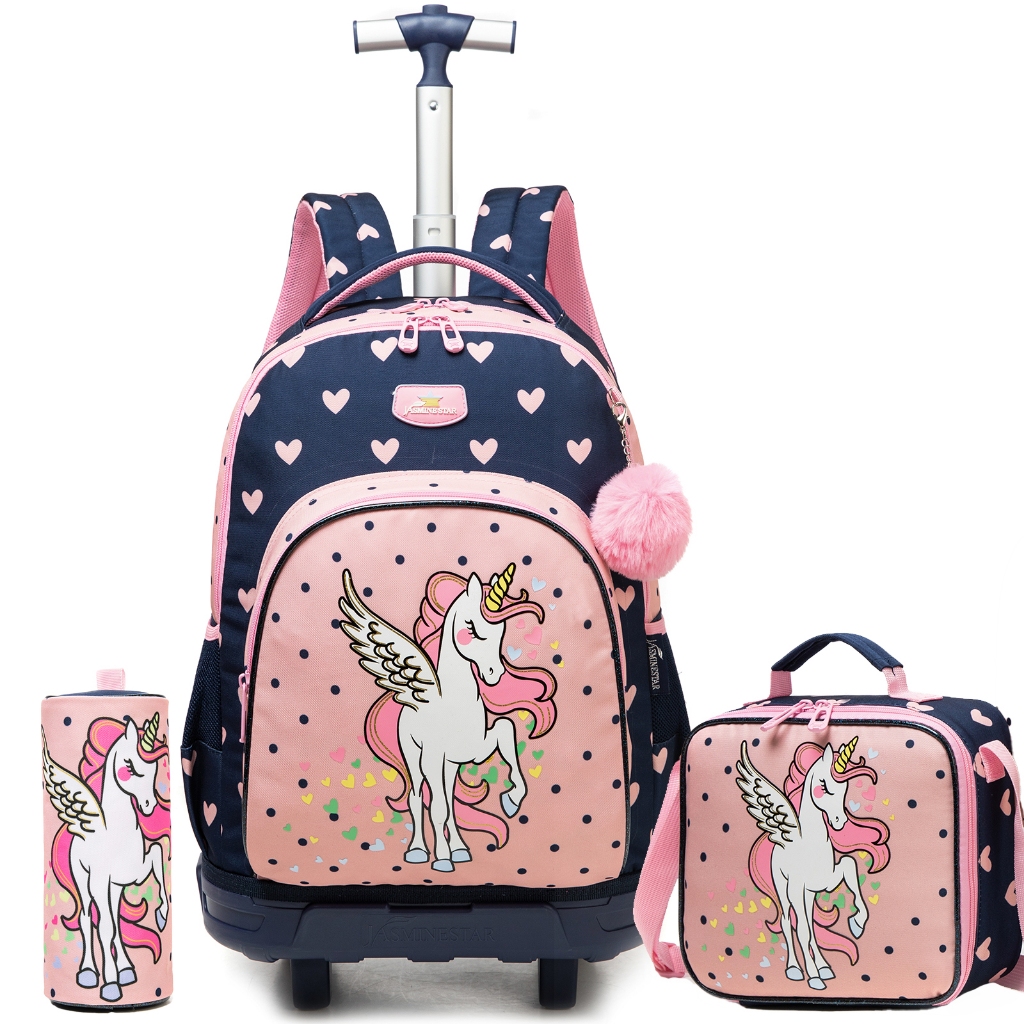 Mochila com rodinhas para meninos, mochila com rodinhas para crianças, mochila com rodinhas para meninas com lancheira