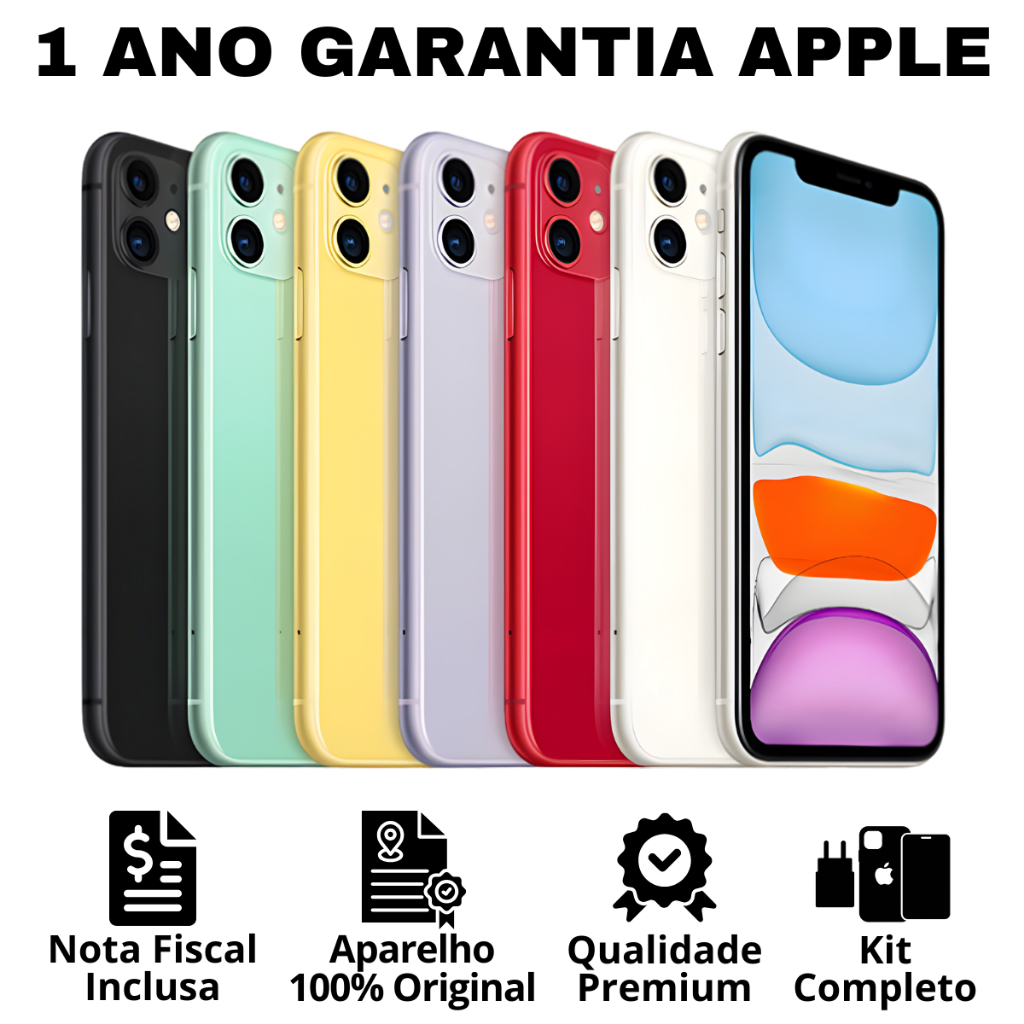 Celular iPhone 11 (64GB) (128GB) 100% Original Apple Novo Lacrado NF Garantia Apple 1 Ano