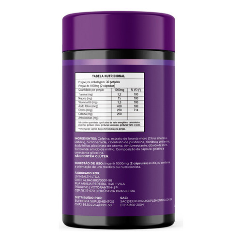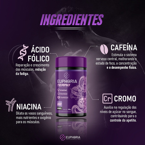 Euphoria Suplemento Termogênico Desincha Corpo - 60cap