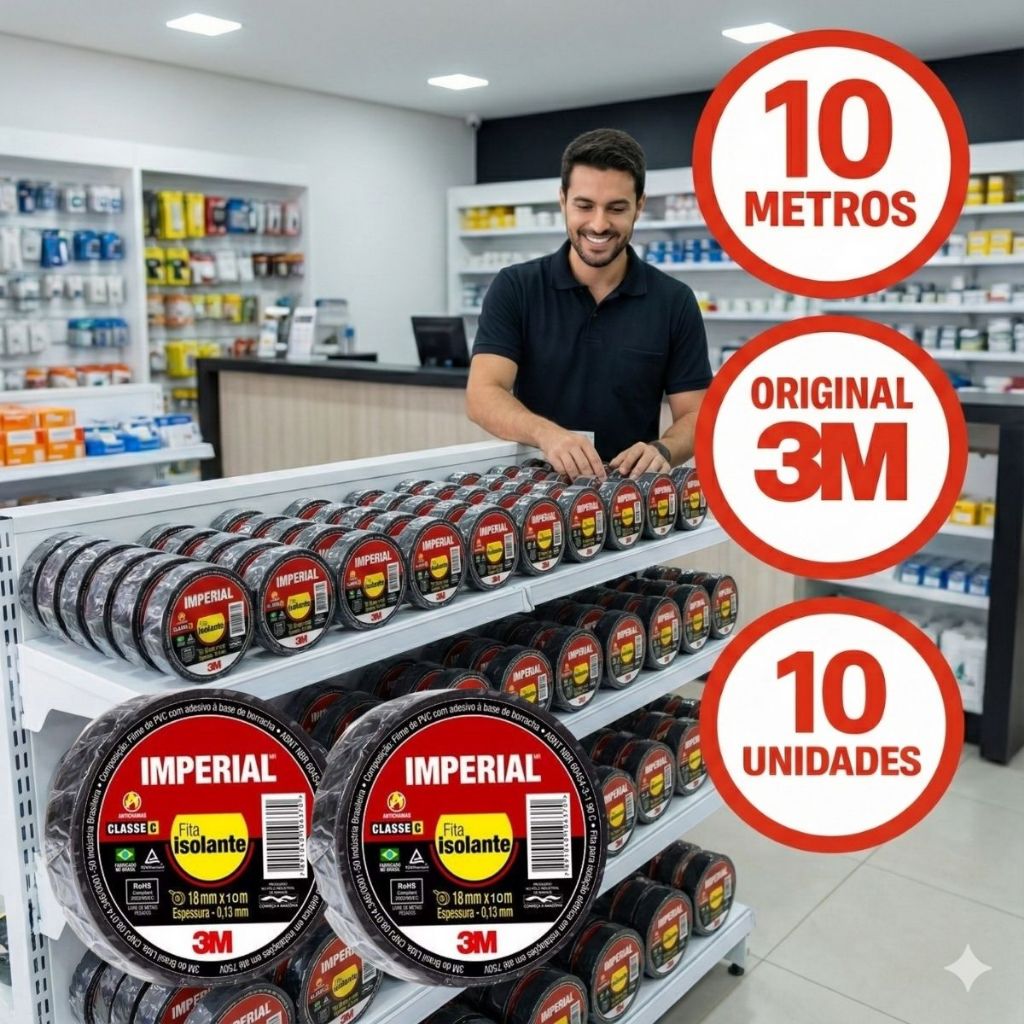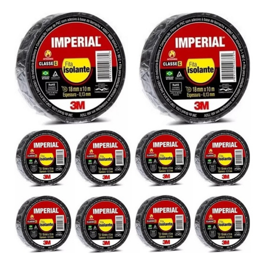 Kit 10 Fitas Isolante 10m x 18mm 3M Original Alta Qualidade, Resistência e Segurança