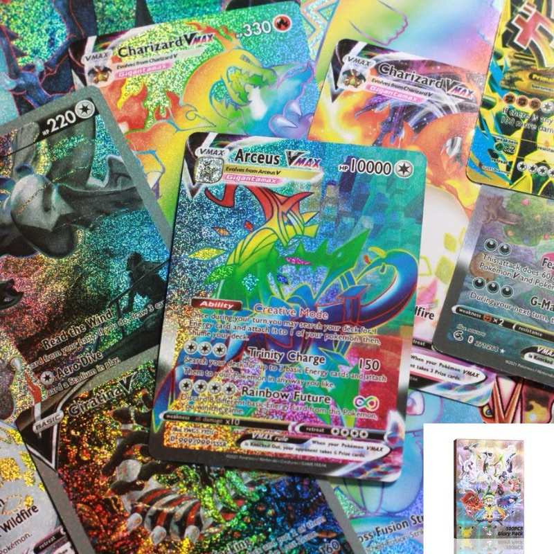 220 Cartas Pokémon Brilhantes Colorido Cards Colecionáveis Raros em Metal Anime Deck para Jogo de Batalha e Presente