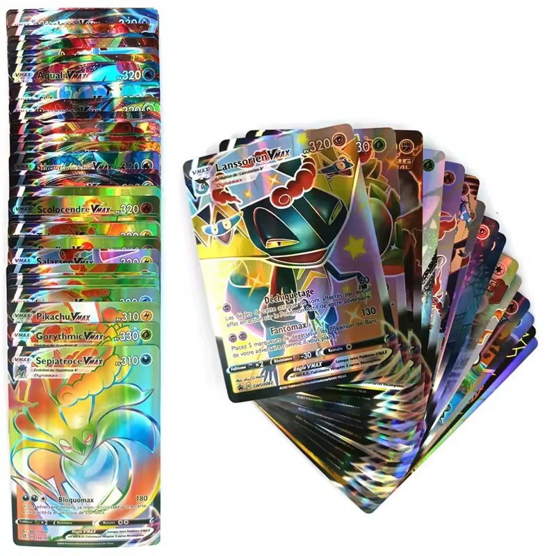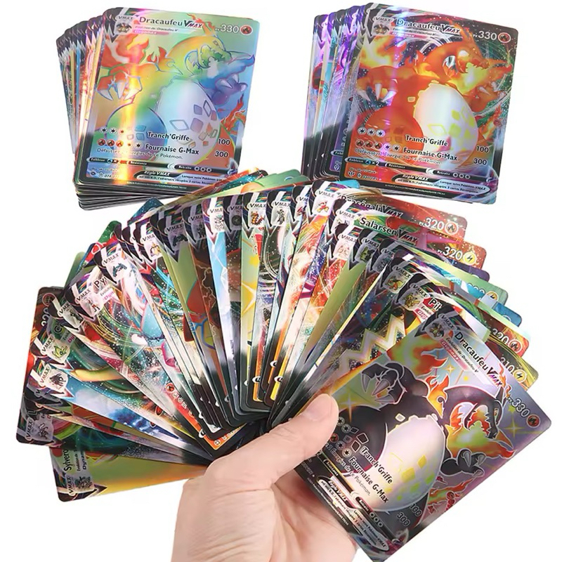 Kit 100 Pcs Cartas Pokémon BRILHANTE Carta Pokémon VMAX Português