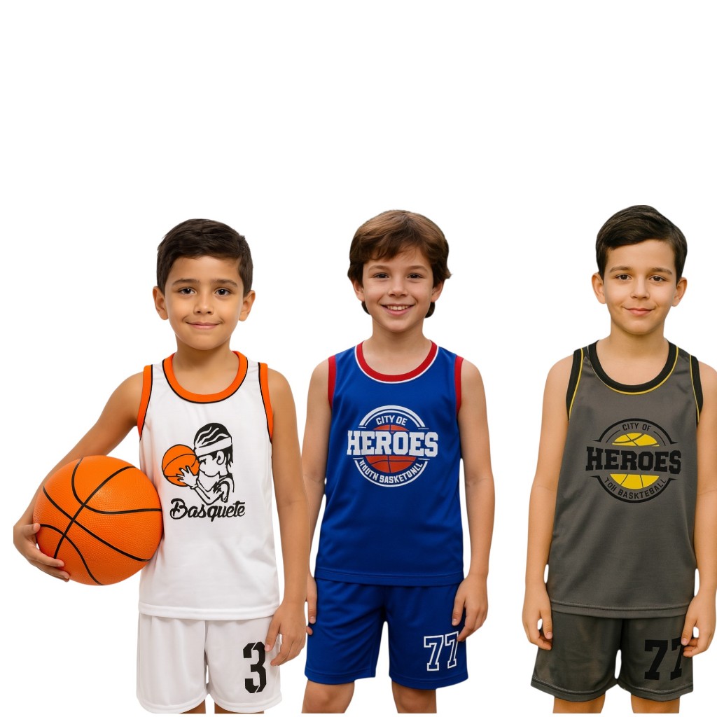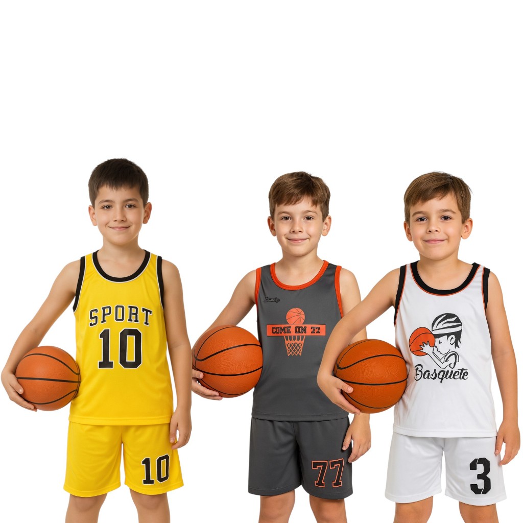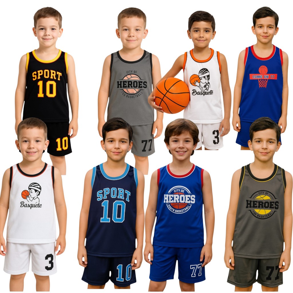 KIT DE ROUPA DE MENINO COM SHORT + CAMISETA REGATA DE BASQUETE KIT COM CONJUNTOS ESPORTIVO INFANTIL