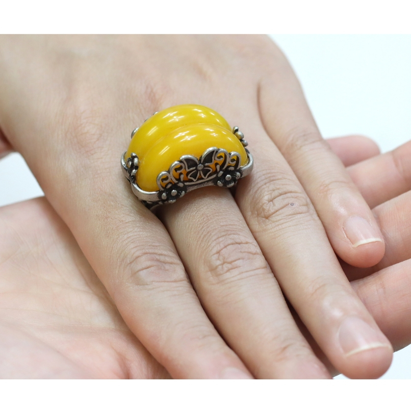 Coreia Estilo Tradicional Pedra Preciosa Aventrina Jade Âmbar Anéis Casamento Latão Hanbok
