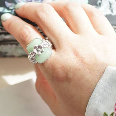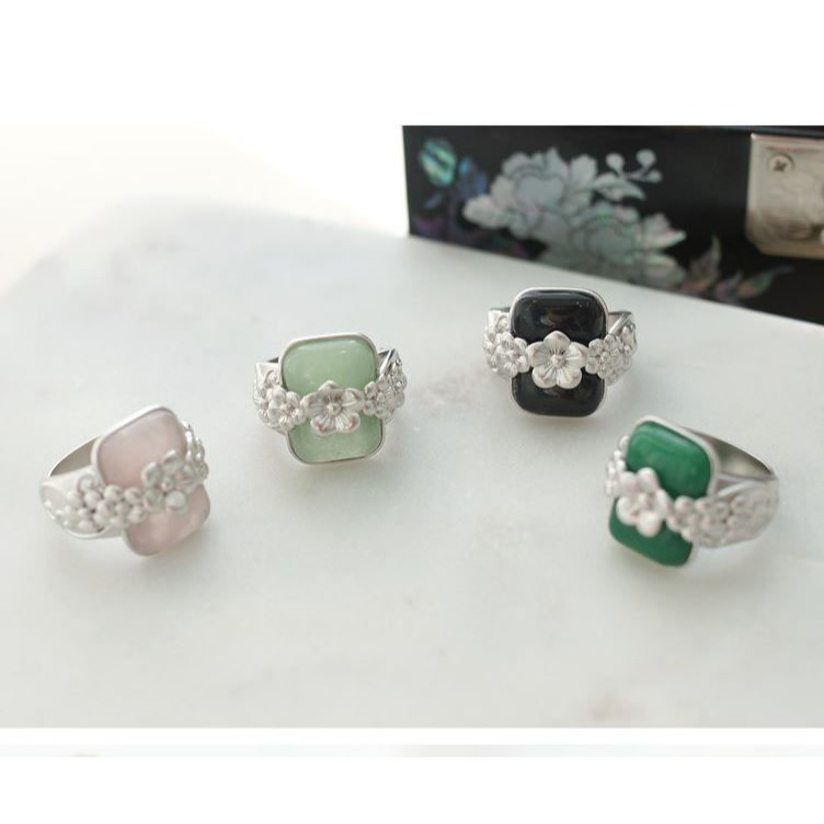 Coreia Estilo Tradicional Latão Freesize K-Drama Moda Pedra Preciosa Aventrine Jade Anéis Casamento Hanbok