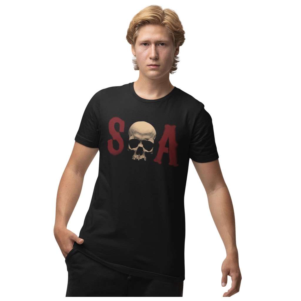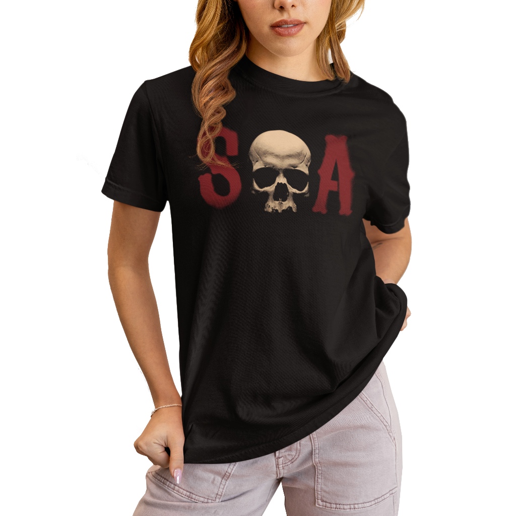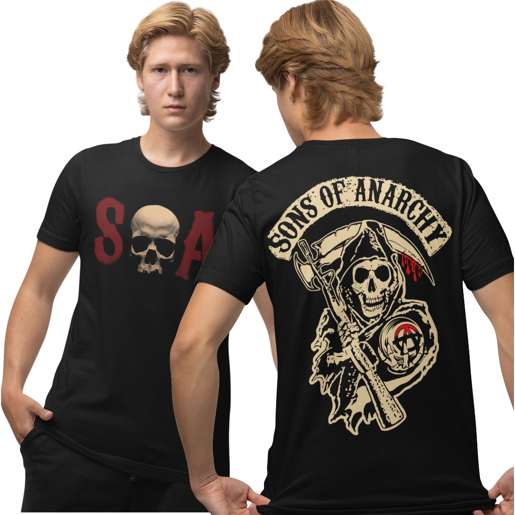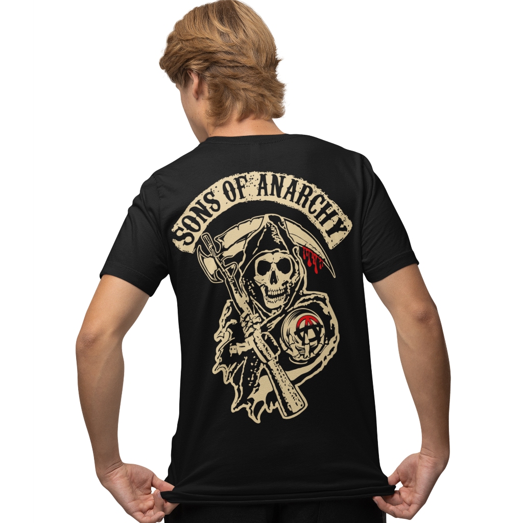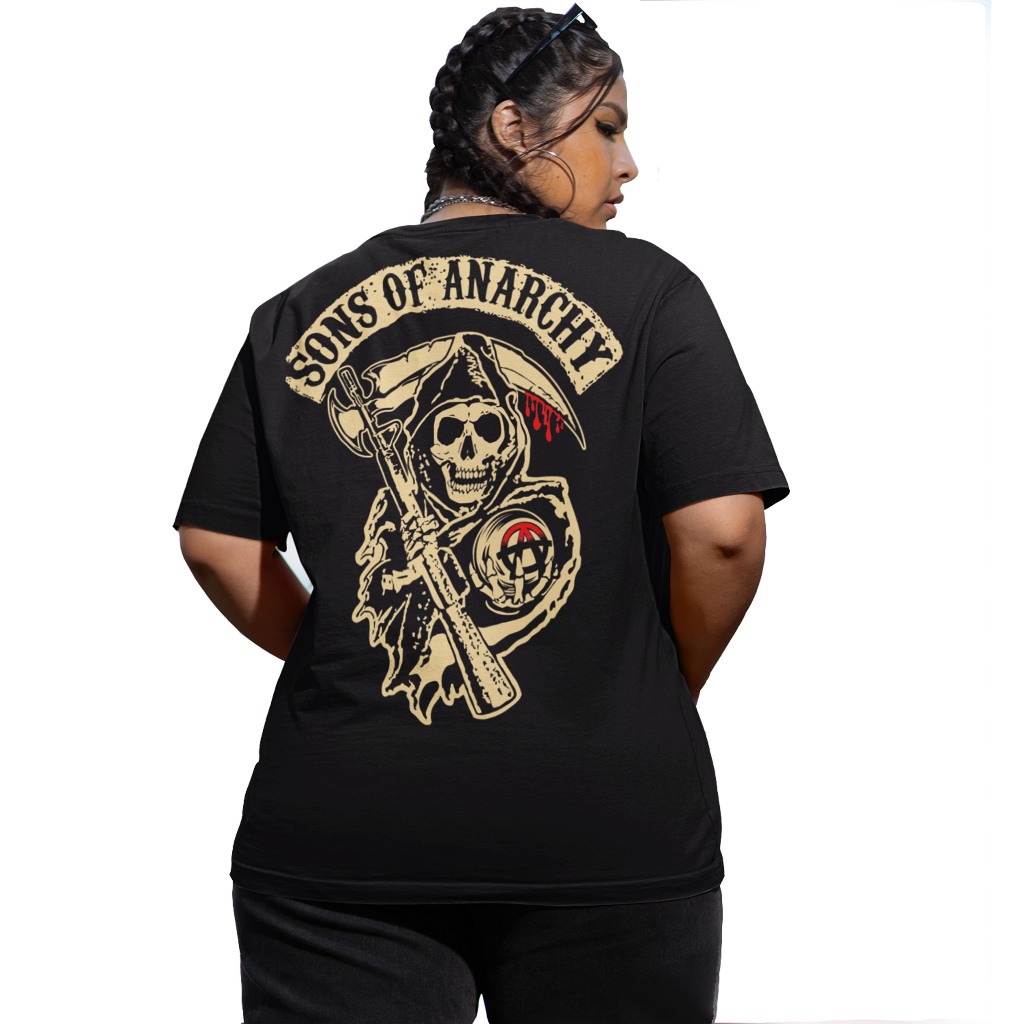 Camiseta 100% Algodão Fio 30.1 Estampada a mão serigrafia Frente e Costa Série Filhos da Anarquia/Sons Of Anarchy Model1