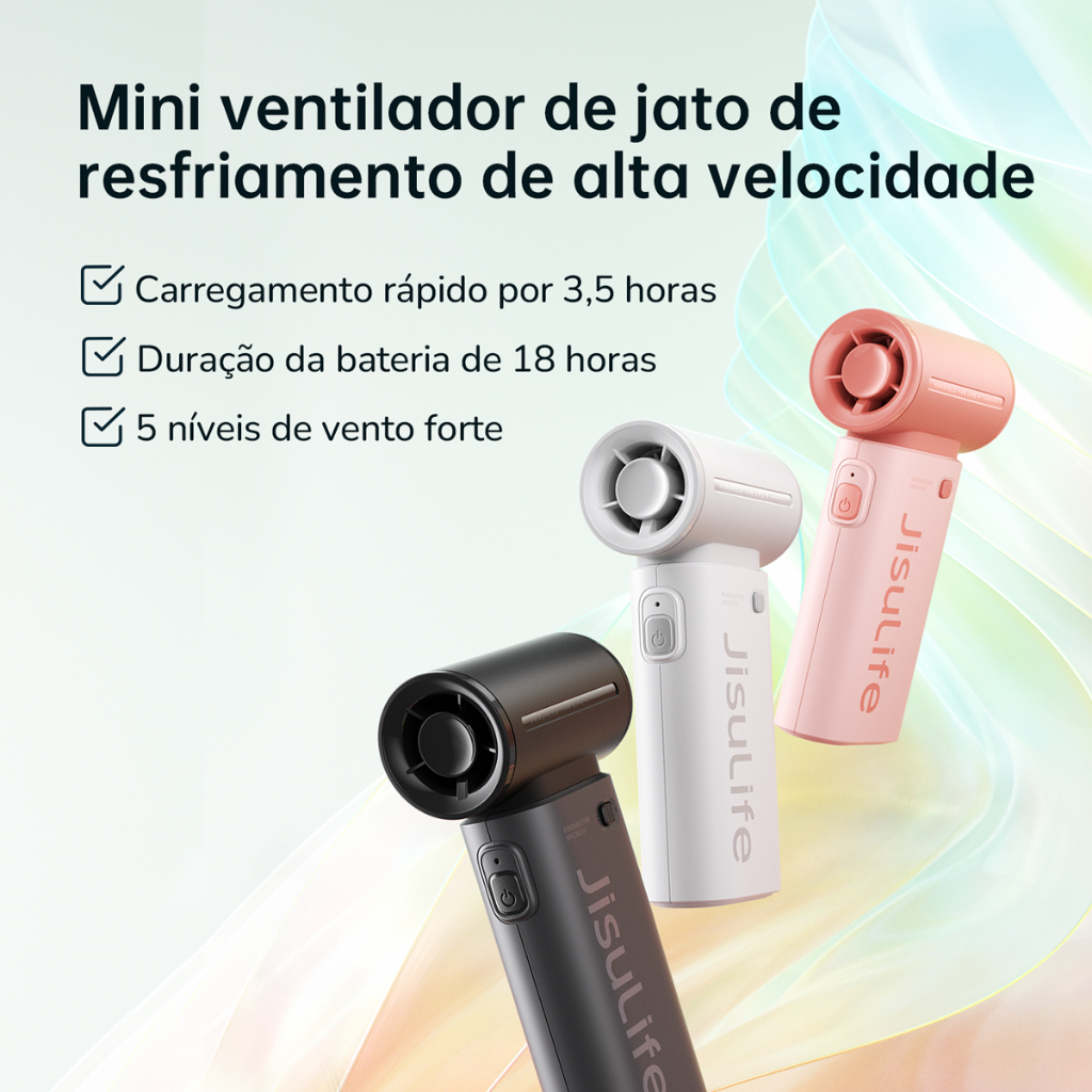 JISULIFE Mini Ventilador Portátil de Mão Turbo 5 Velocidade 18 hora Recarregável 5000mAh (Life9)