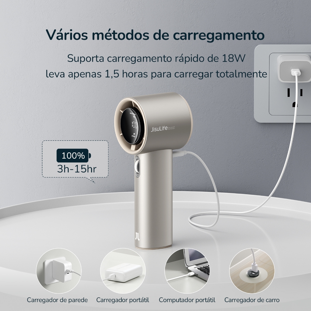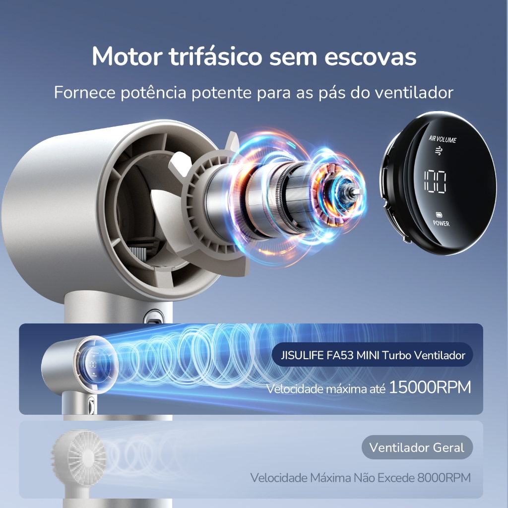 JISULIFE Ventilador Turbo Portátil Recarregável Liga de Alumínio 100 Velocidades Tela LED (Pro1S)