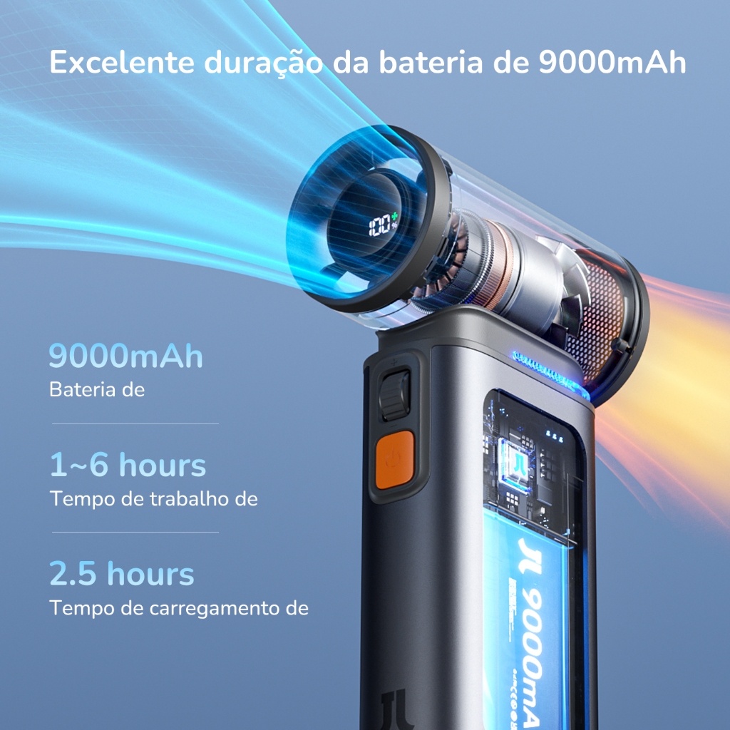 JISULIFE Ventilador Portátil Ultra 1 Potente 3 Modos Recarregável Multi-funcional 9000mAh 19M/S