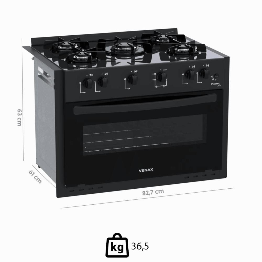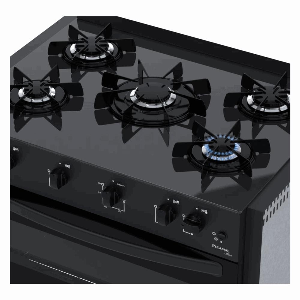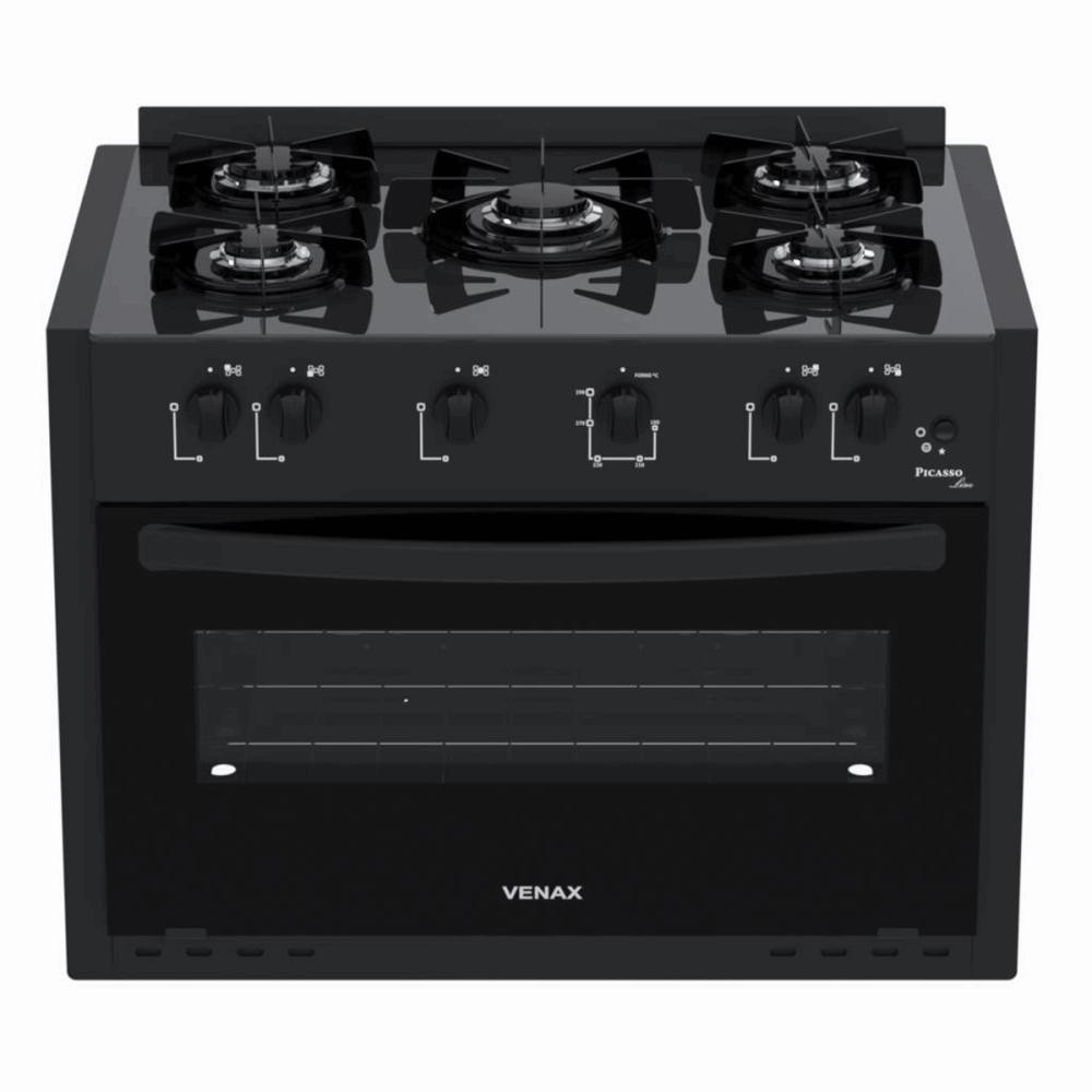 Fogão Venax Picasso Line 5 Bocas de Embutir Preto Fosco a Gás Em Vidro Temperado Bivolt P30260
