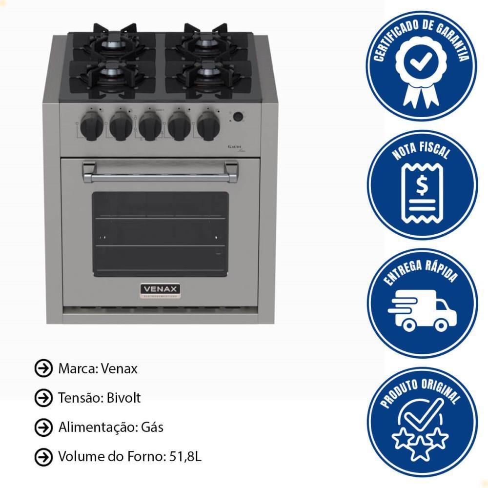 Fogão De Embutir 4 Bocas Venax Gaudi Line Inox 51,8L Gás GLP Automático Bivolt 30299