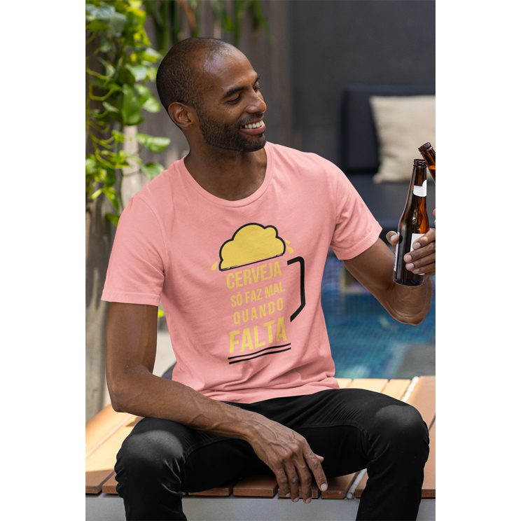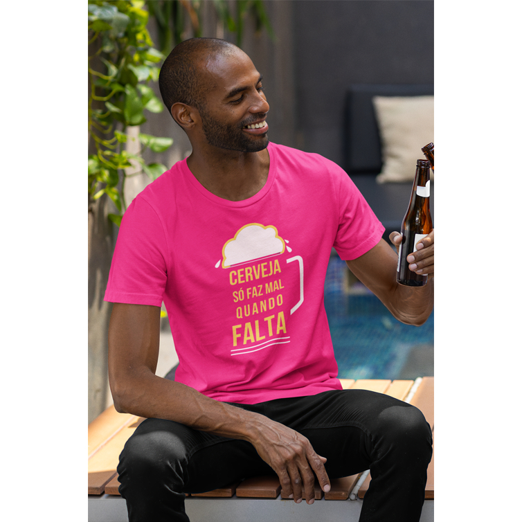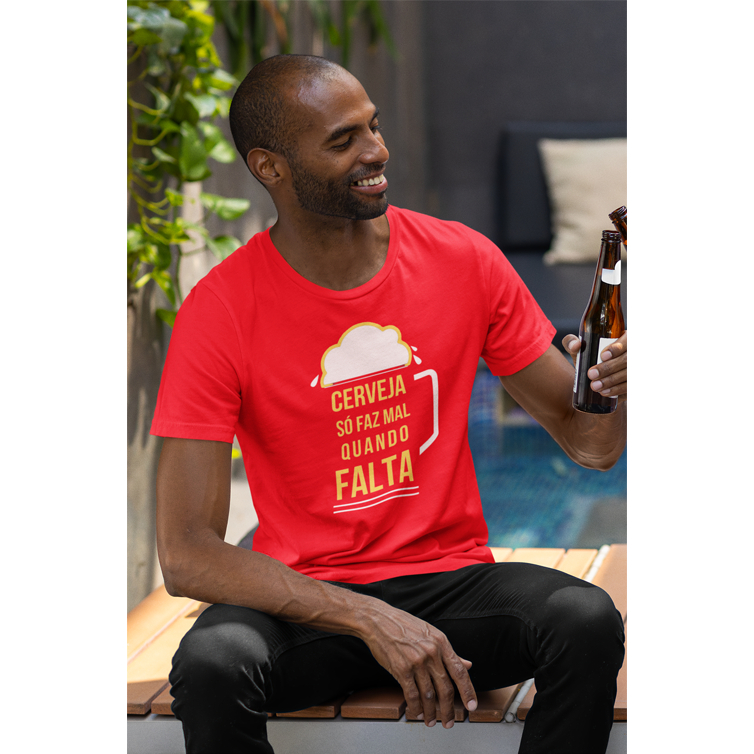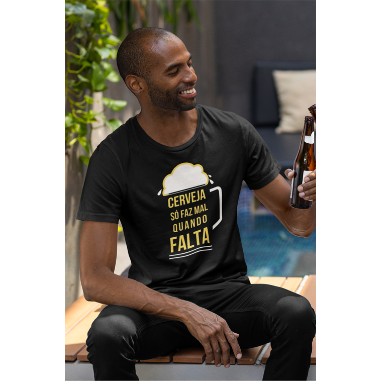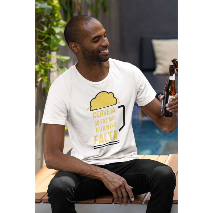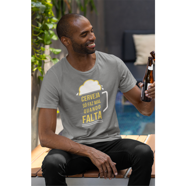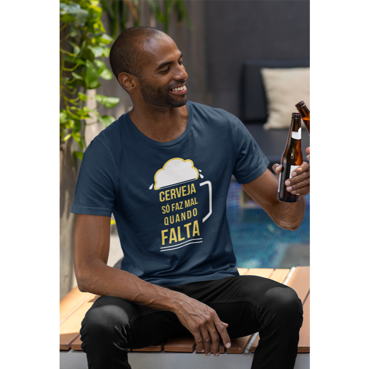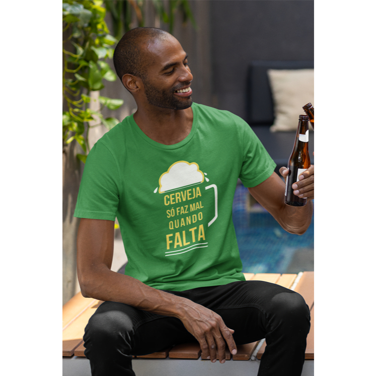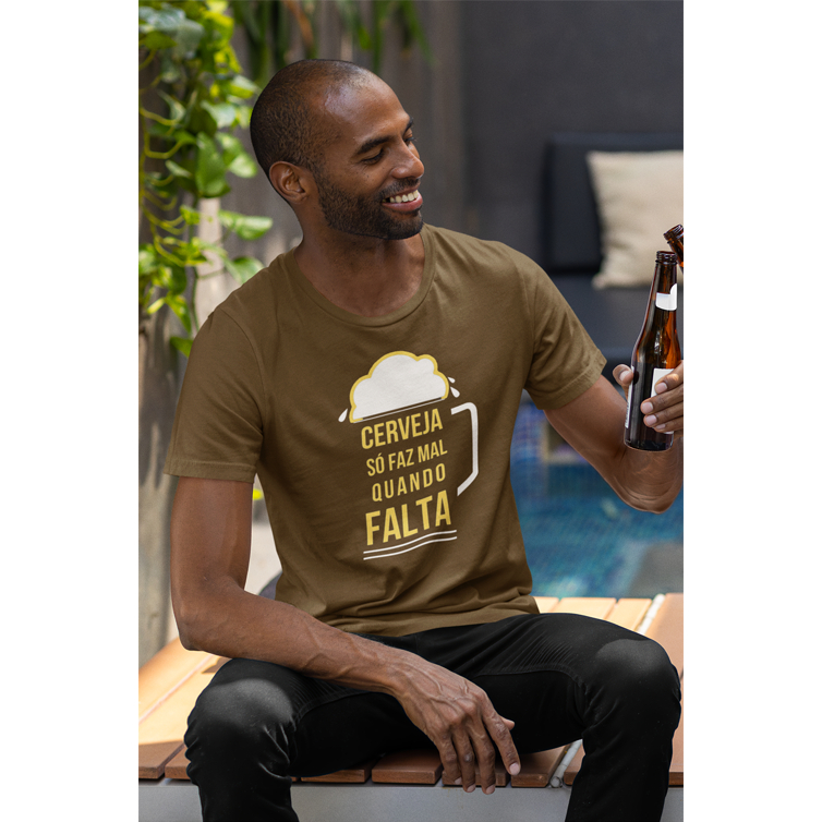 Camisa Masculina 100% Algodão "Cerveja Só Faz Mal Quando Falta" Camiseta Tee Homem Cachaceiro Adulto