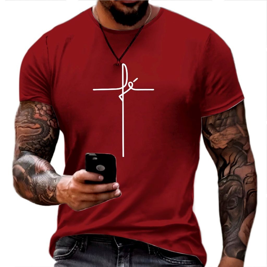 Camiseta Masculina Fé Evangélica Promoção 100% Camisa Algodão Dia a dia Casual Premium