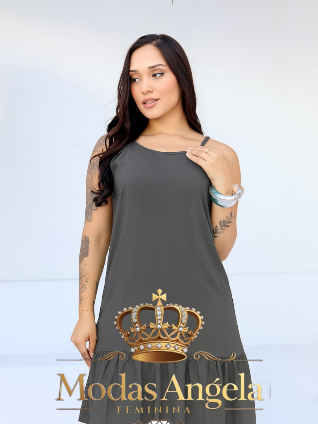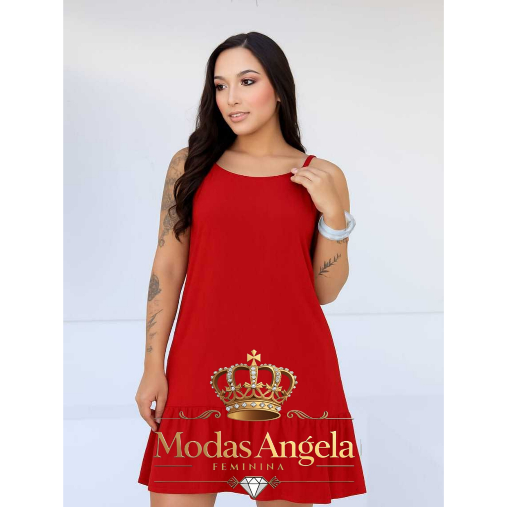 Vestido Feminino Alçinha Lisa Soltinho Elegante Babado Viscolinho Com Alça Regulavel( M G GG).2026