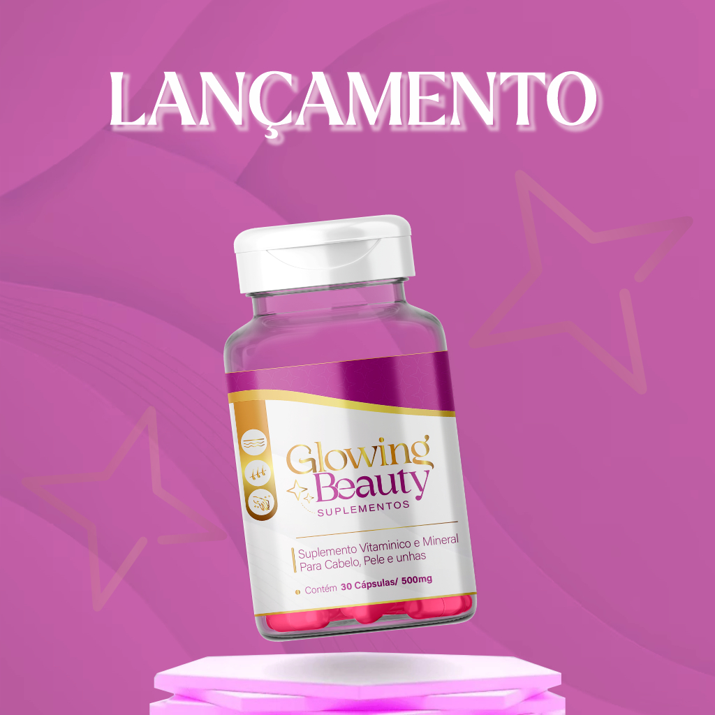 Glowing Beauty - Fortalecedor Cabelo, Pele e Unha 100% Natural 500mg 30 Cápsulas Glowing Beauty Suplementos