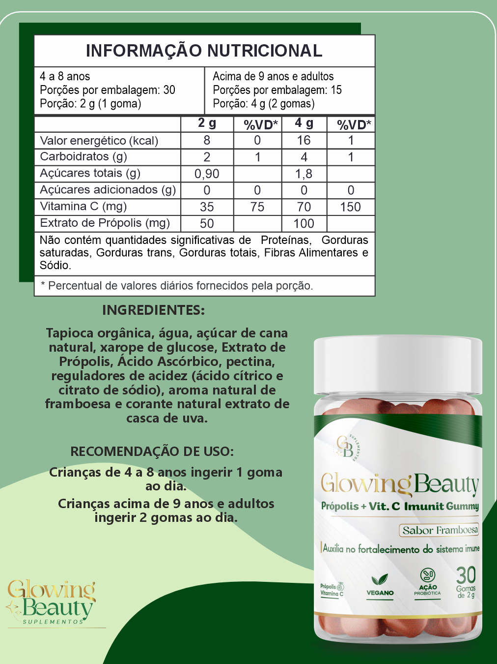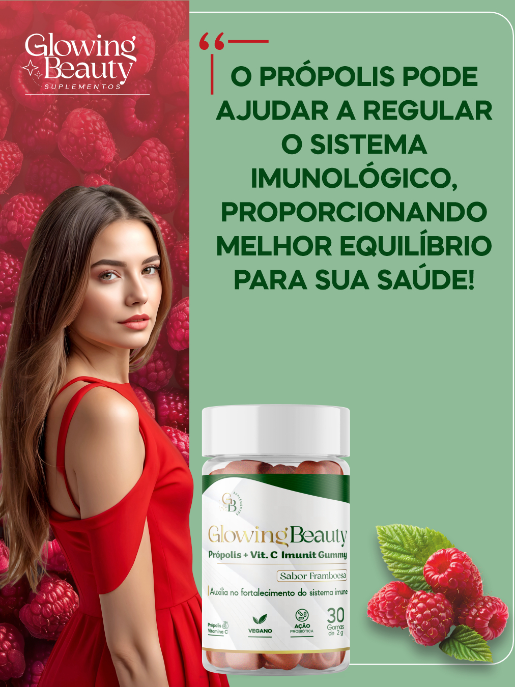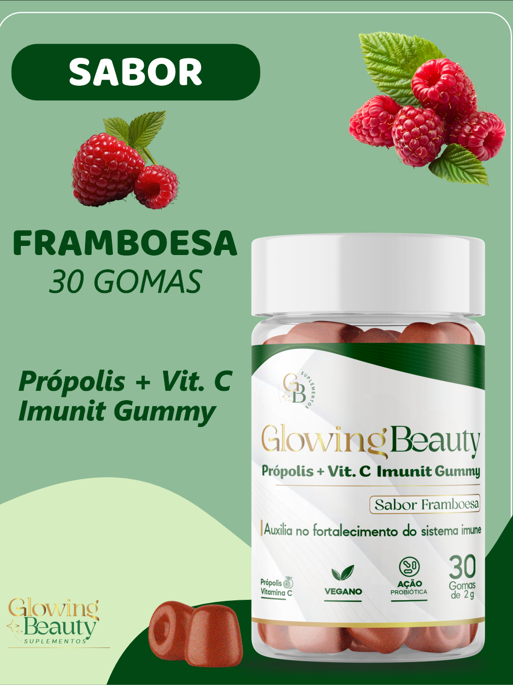 Kit 3 Potes De Gomas Imunit Gummy Própolis + Vitamina C 100% Natural Sabor Framboesa 30 Gomas.