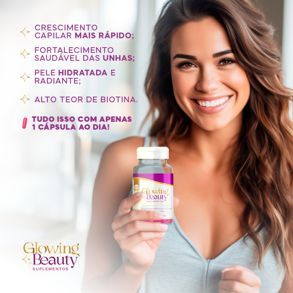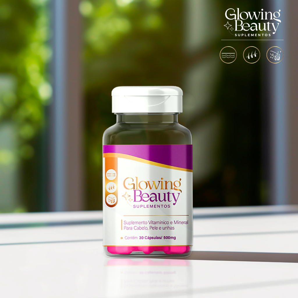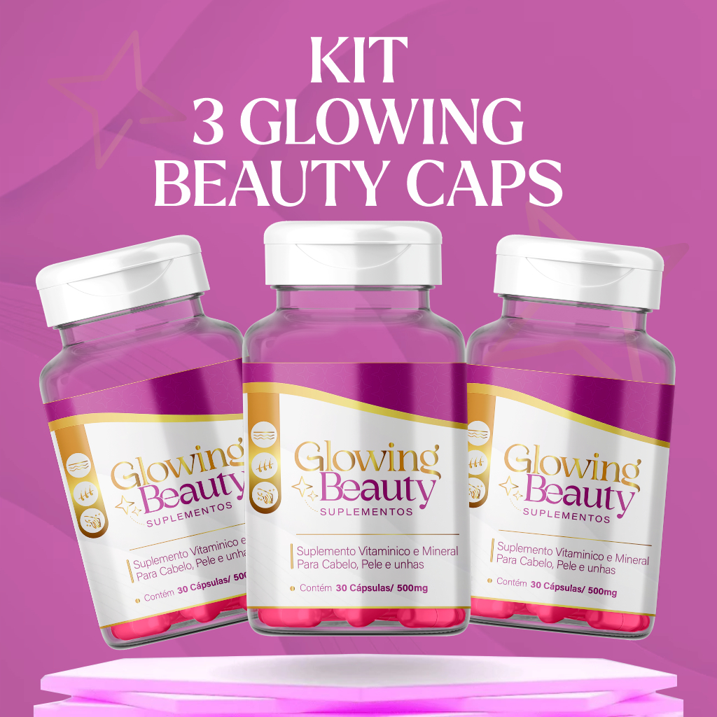 KIT 3 Glowing Beauty - Fortalecedor Cabelo, Pele e Unha Natural 500mg 30 Cáps