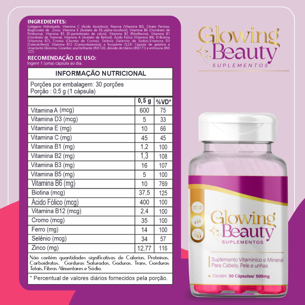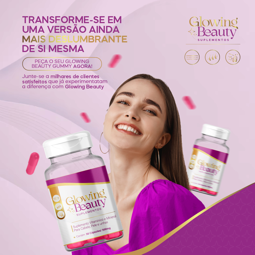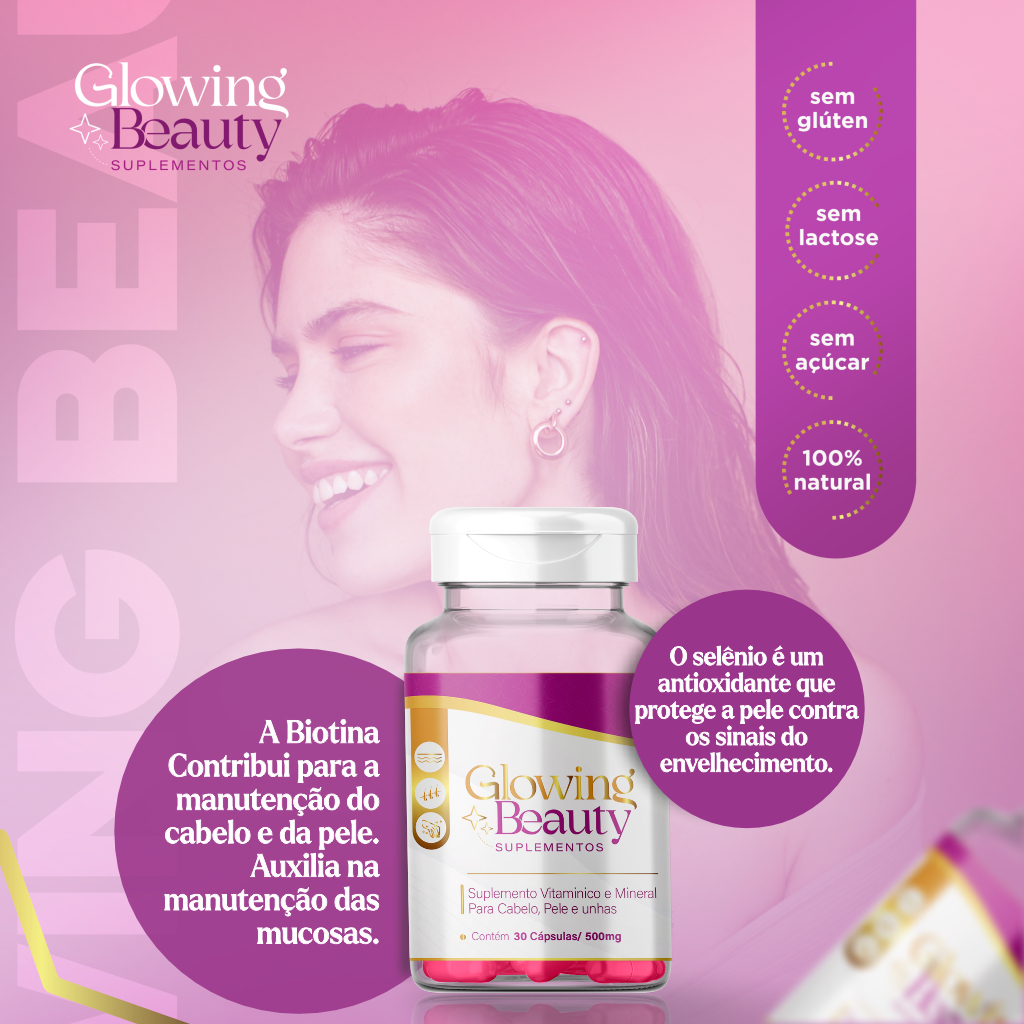 KIT 3 Glowing Beauty - Fortalecedor Cabelo, Pele e Unha Natural 500mg 30 Cáps
