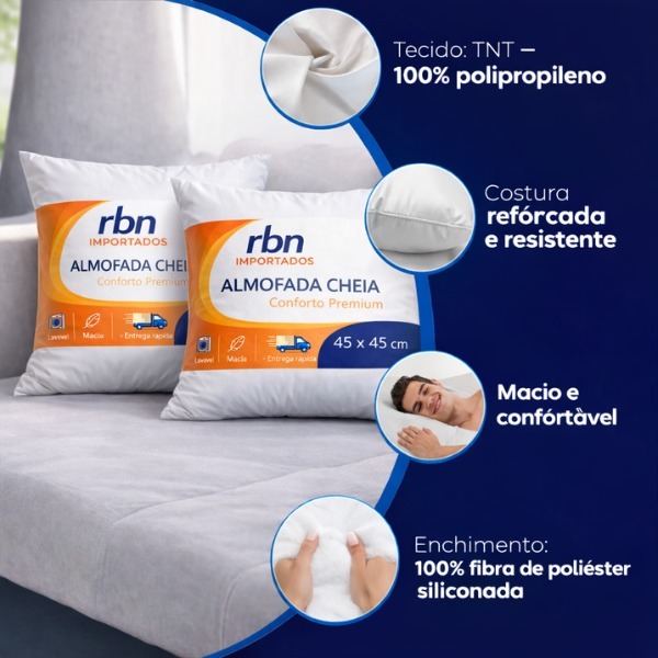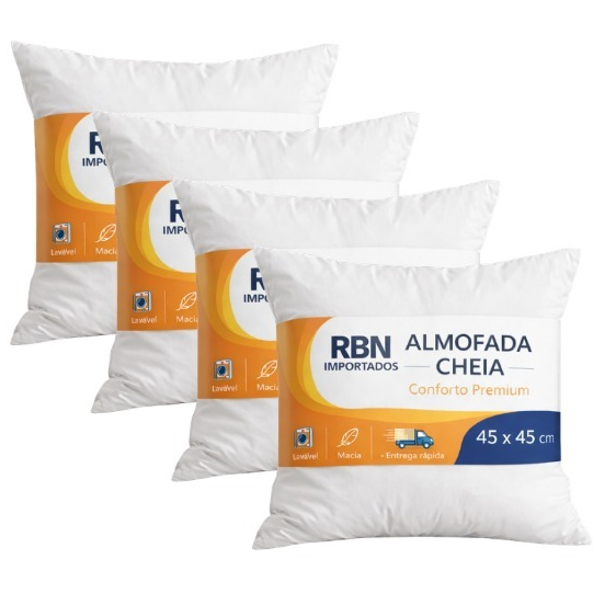 KIT 4 ENCHIMENTOS ALMOFADA 45X45 FIBRA SILICONADA FLOCOS DE ESPUMA – ECONÔMICO E CONFORTÁVEL