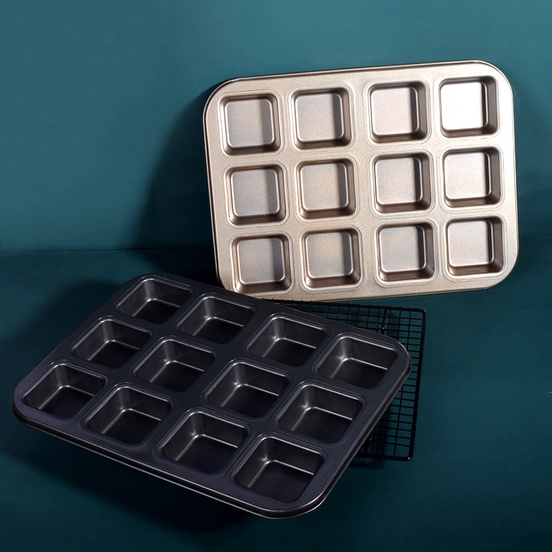 12/6 Grade Bolo Molde Quadrado Mini Pão Hambúrguer Muffin Cupcake Para Casa Antiaderente Assadeira Bandejas De Forno