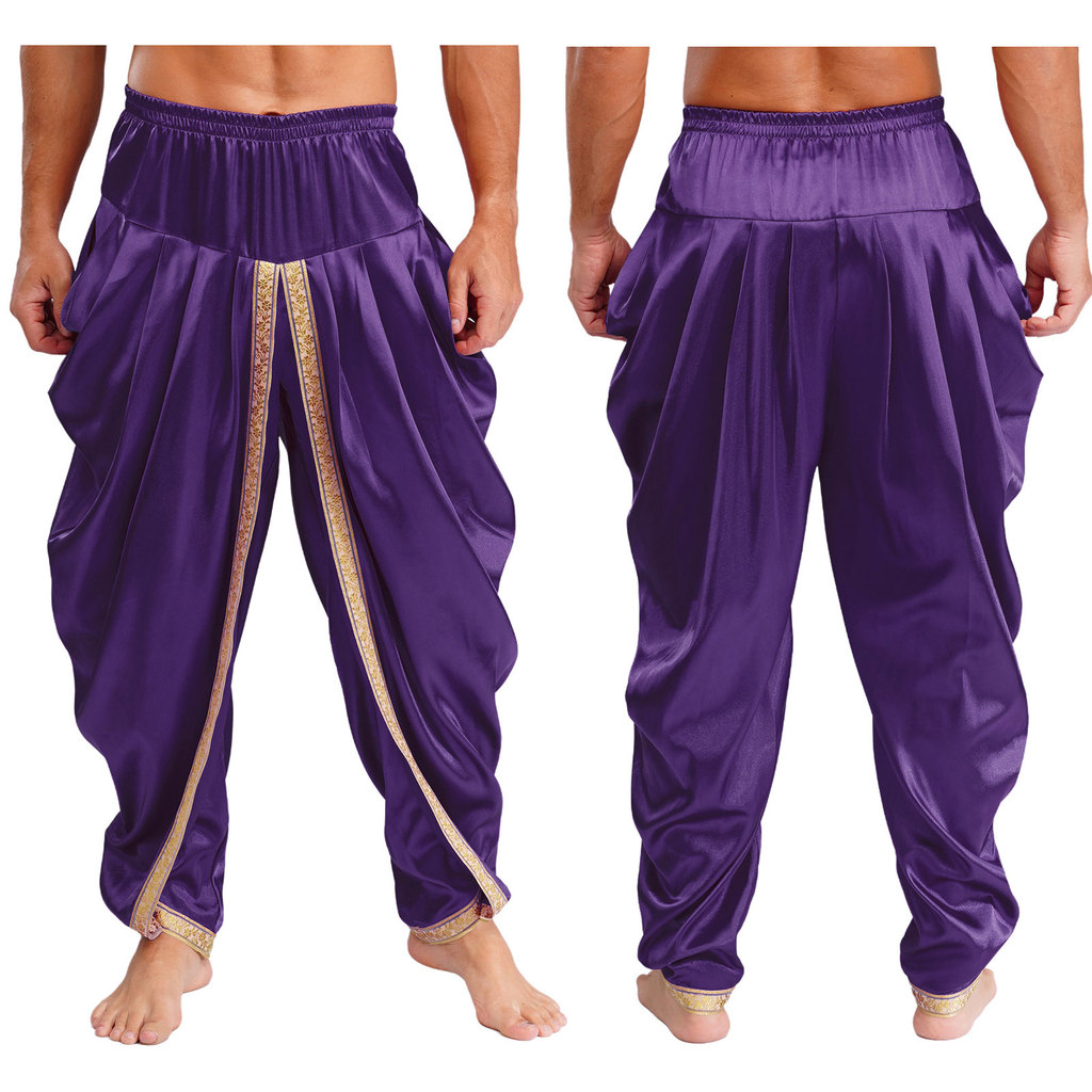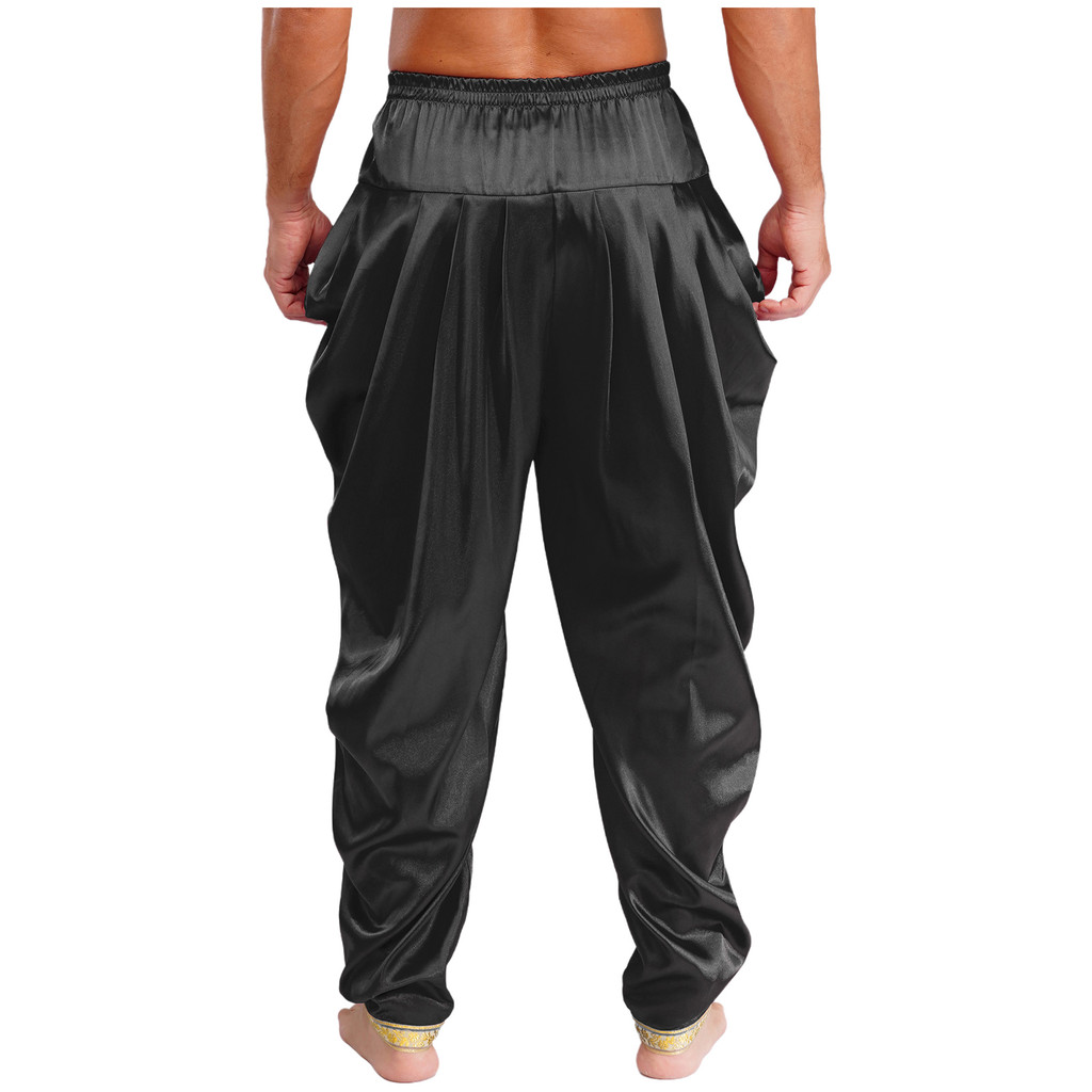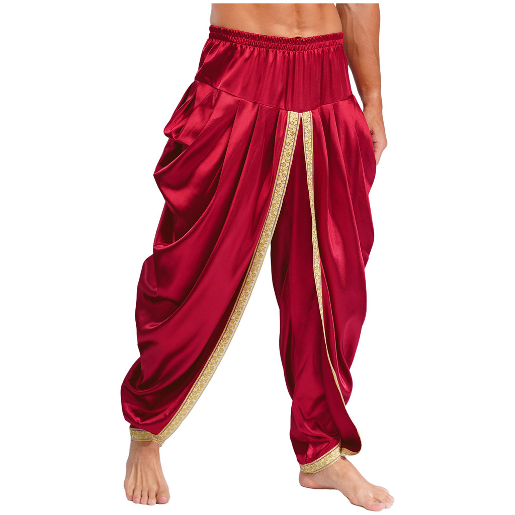 inhzoy Calça Masculina De Cetim Dhoti Casual Cintura Elástica Drapeada Folgada Para Festa Temática De Férias