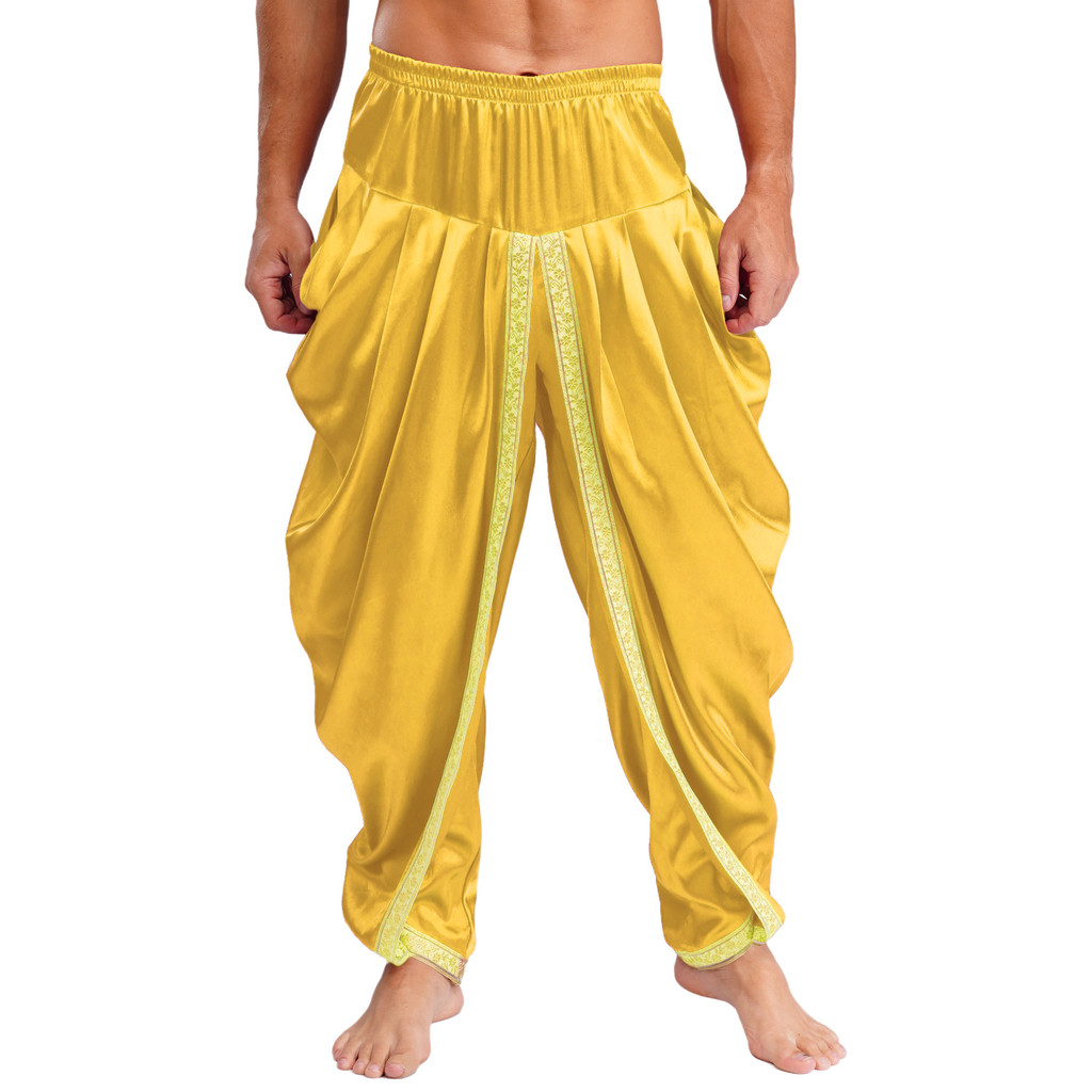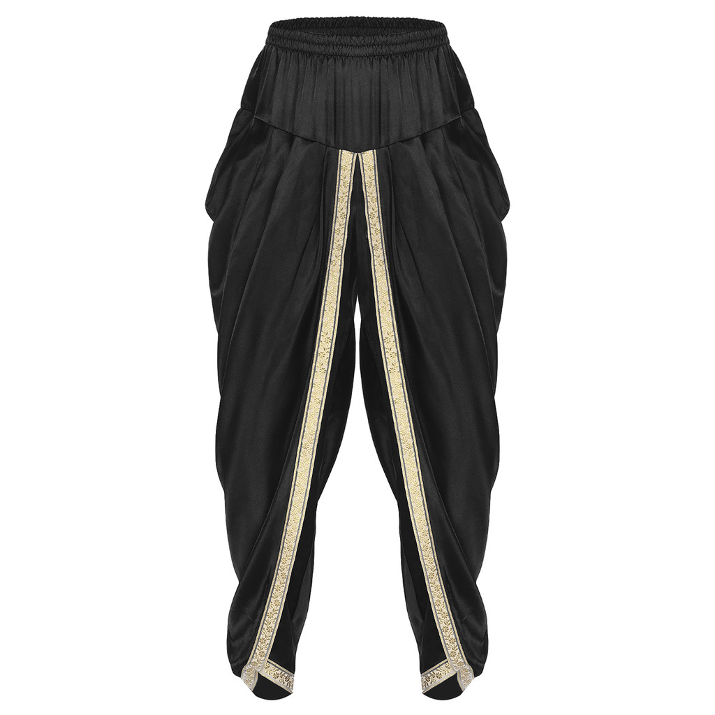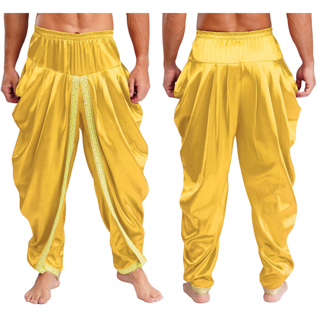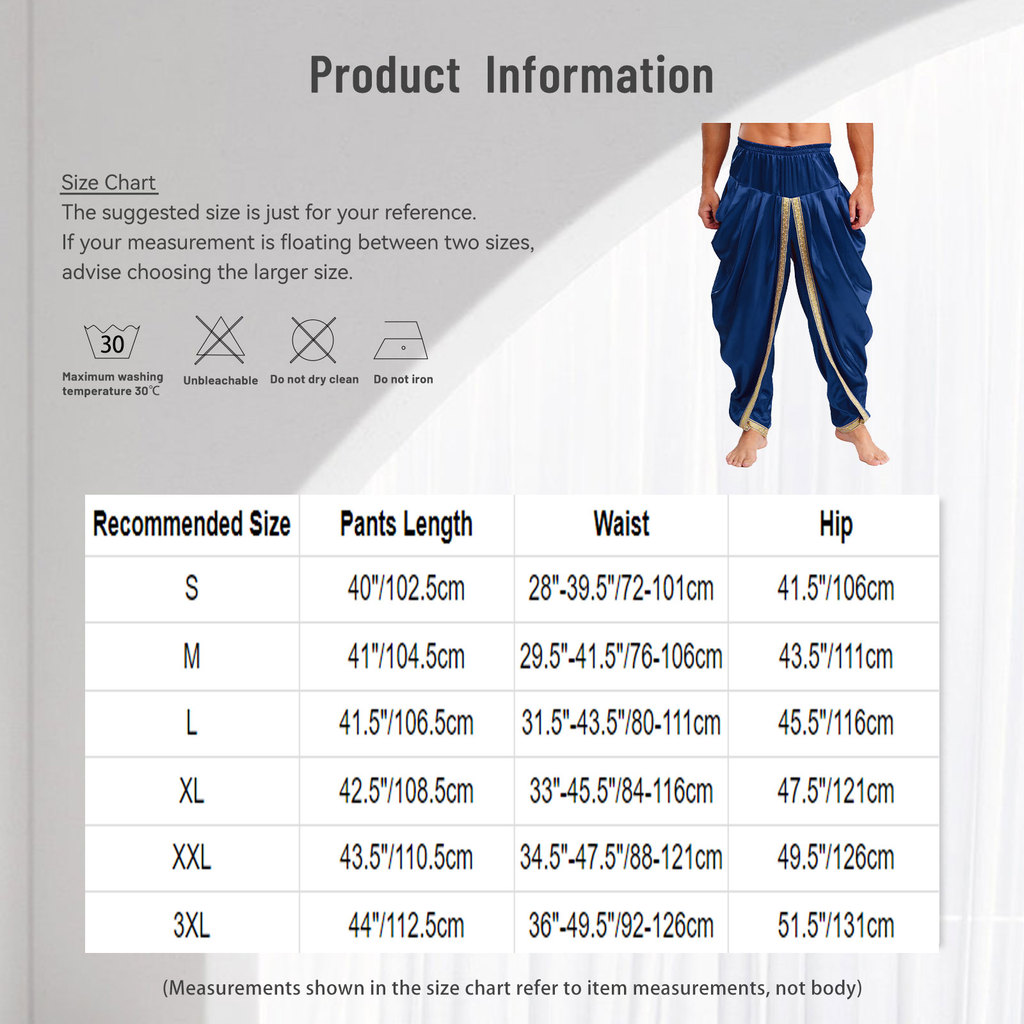 inhzoy Calça Masculina De Cetim Dhoti Casual Cintura Elástica Drapeada Folgada Para Festa Temática De Férias