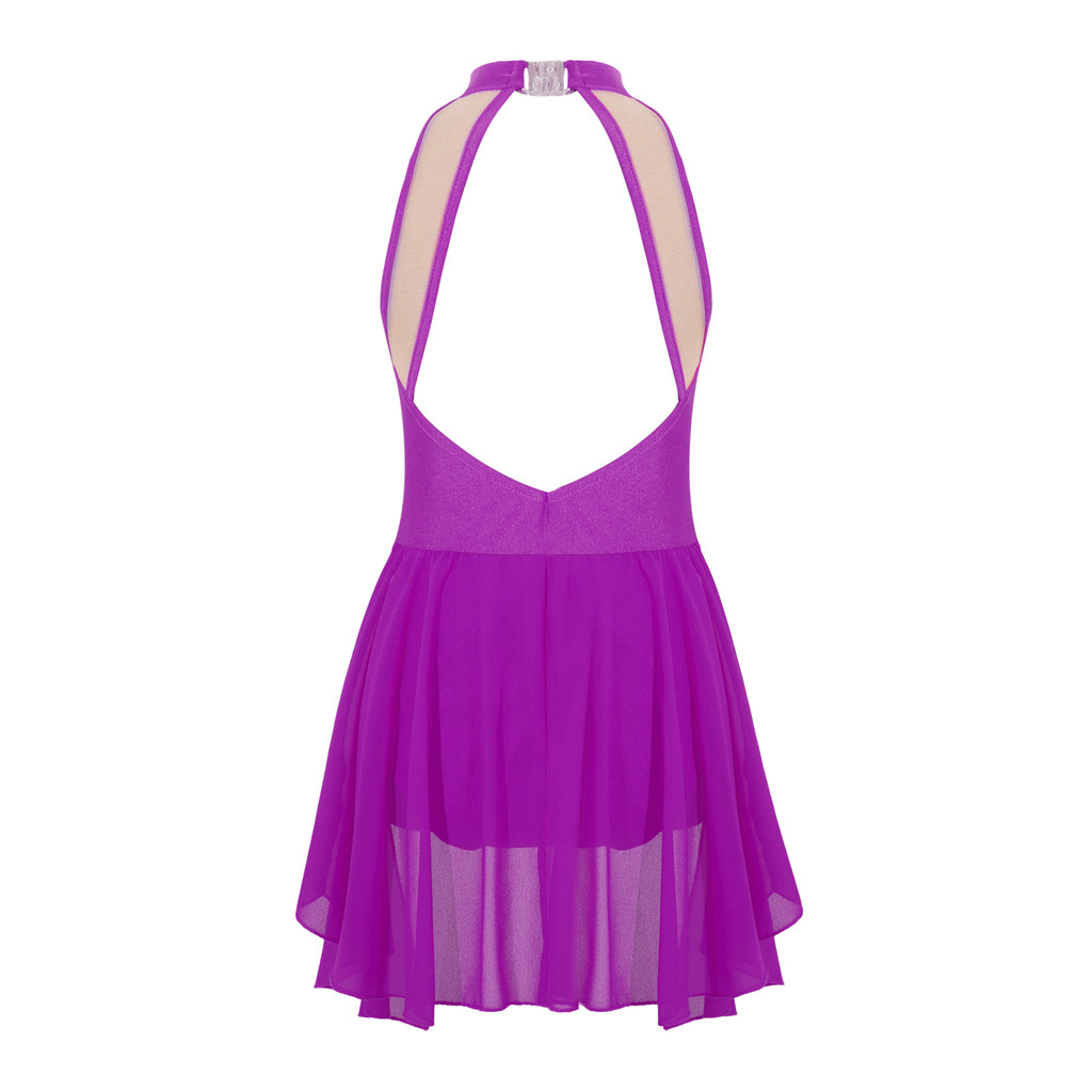 inhzoy Crianças Meninas Elegante Preguiça Sem Mangas Gola Costas Brilhante Strass Lantejoulas Floral Decorado Chiffon Ve