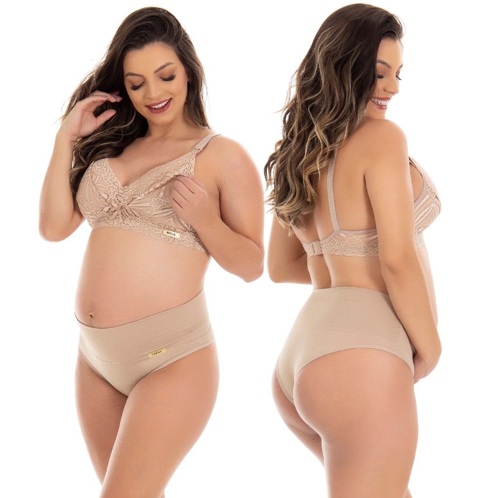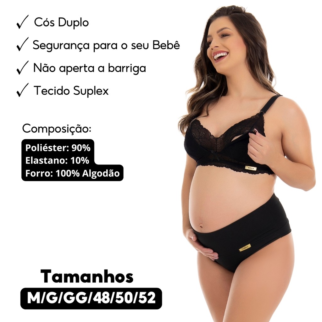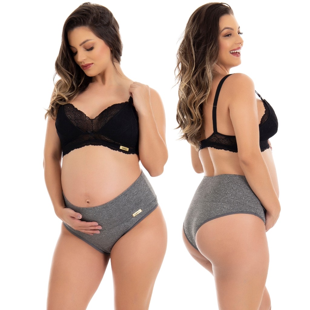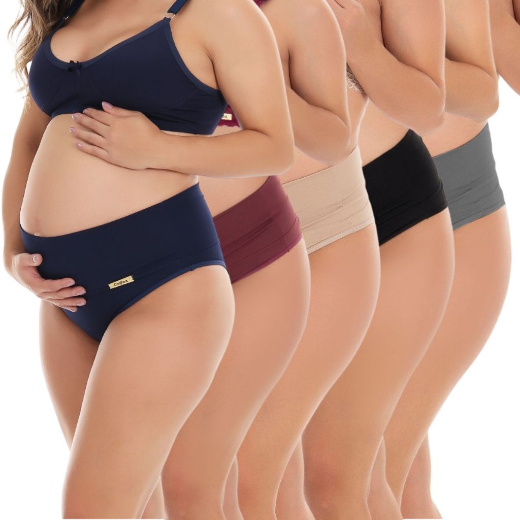 Kit 3 Calcinha Gestante Cós Alto Pós Parto Cinta Modeladora Cintura Alta Compressão Barriga