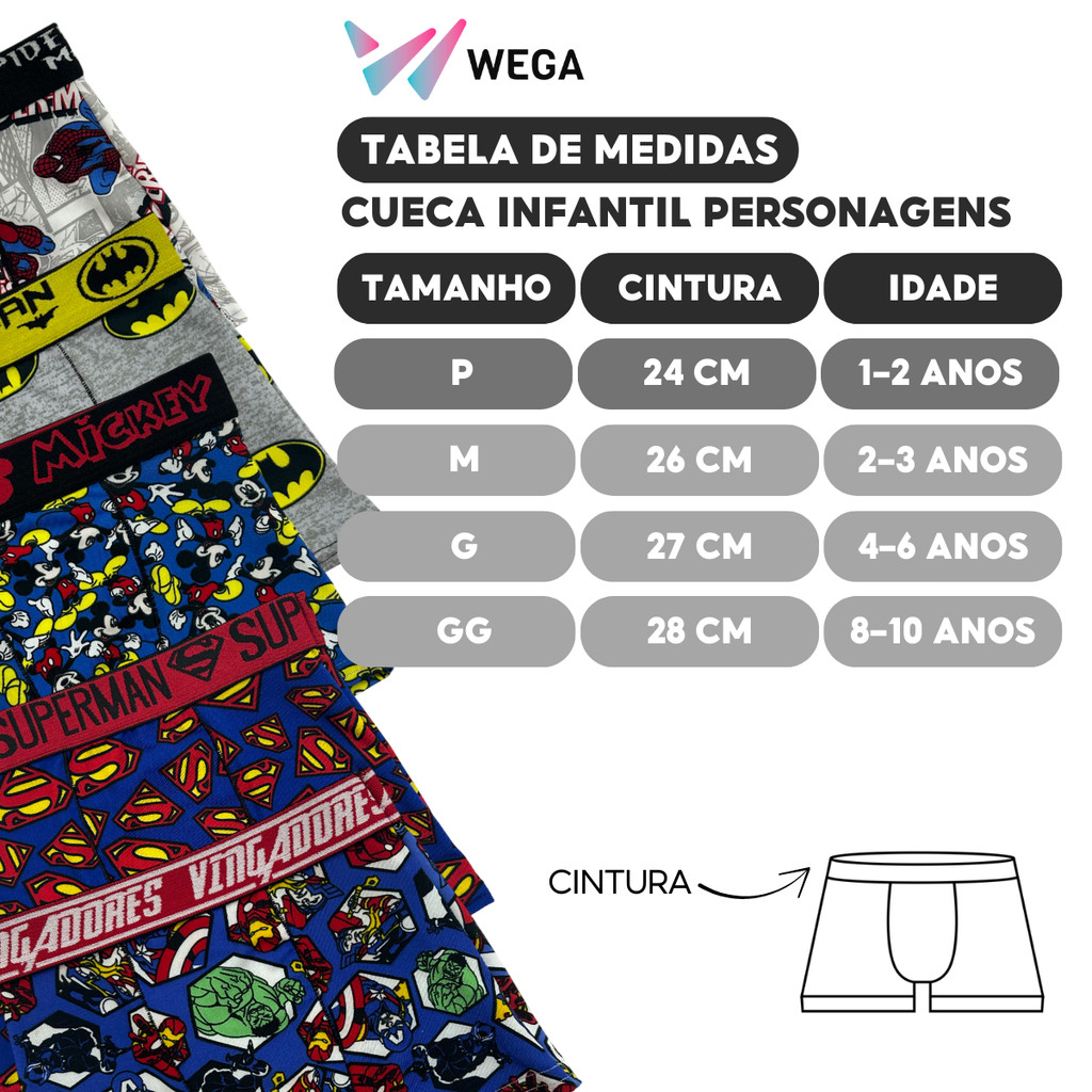 Kit 5 Cueca Infantil 1 a 10 Anos Personagens Forrada Estampada Menino
