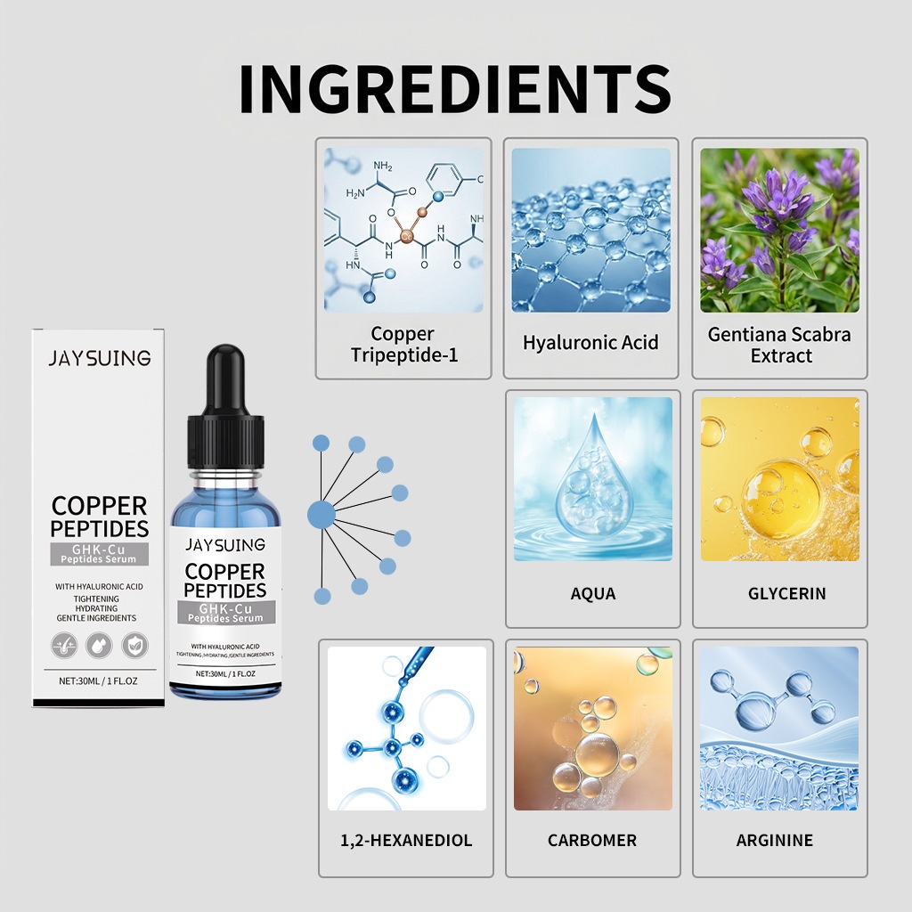 Jaysuing Peptídeos De Cobre Para Rosto-Com GHK-Cu E Ácido Hialurônico-Facial Antienvelhecimento 30ml