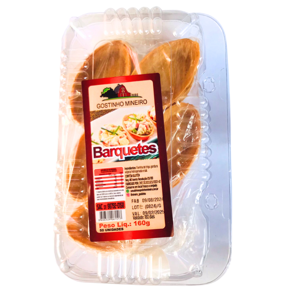 Barquetes Crocantes Para Rechear Bandeja com 50 Und Formato Navette Gostinho Mineiro