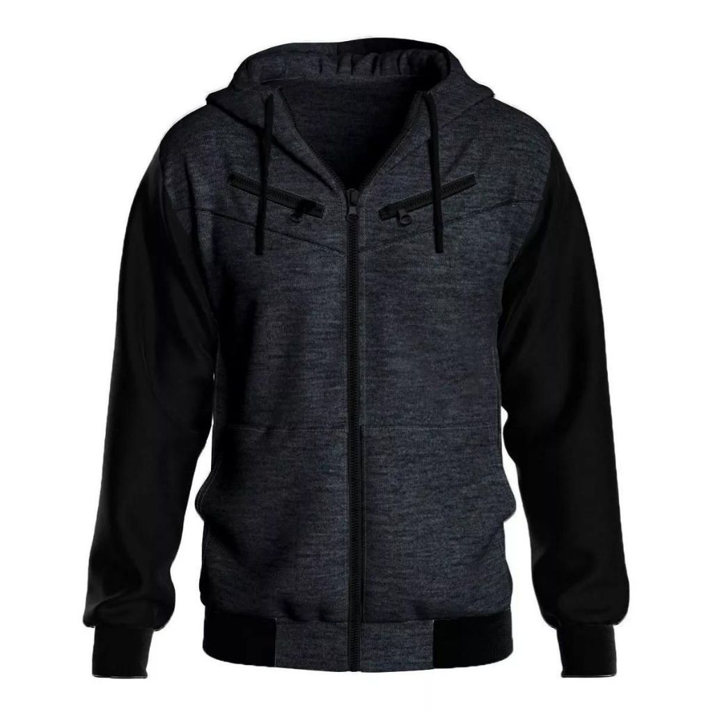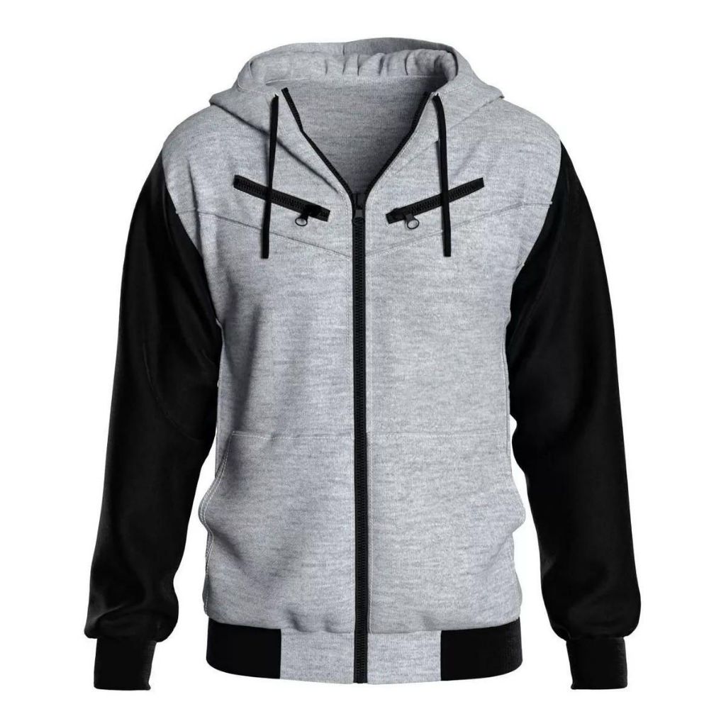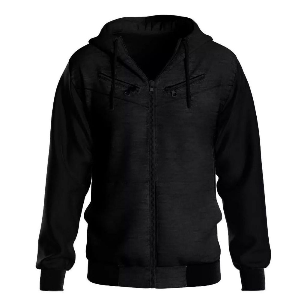 Jaqueta De Moletom Com Ziper Bolso Canguru Blusa De Frio Lisa