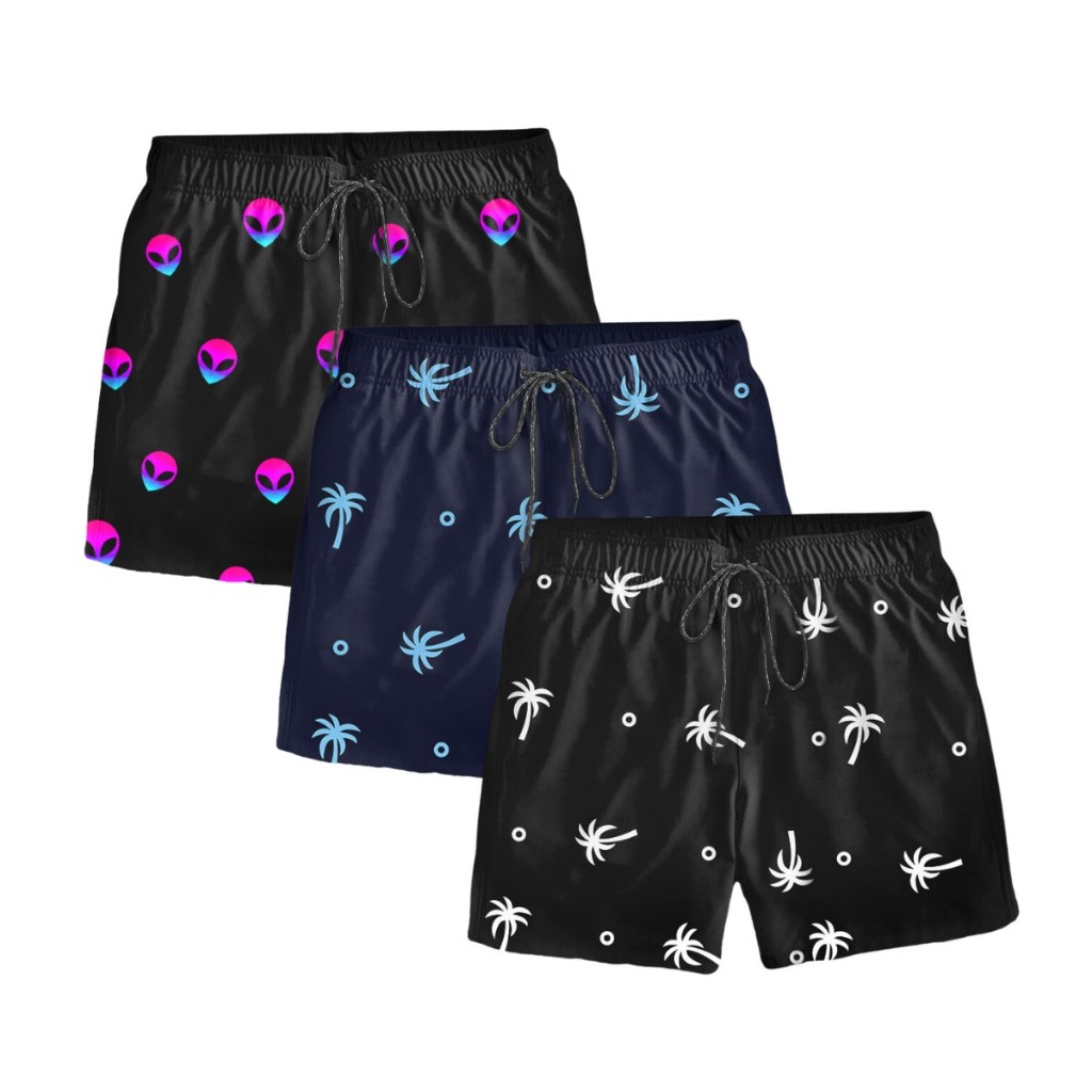 Kit 3 Shorts Plus Size Masculino Moda Praia Tactel G1 G2 G3