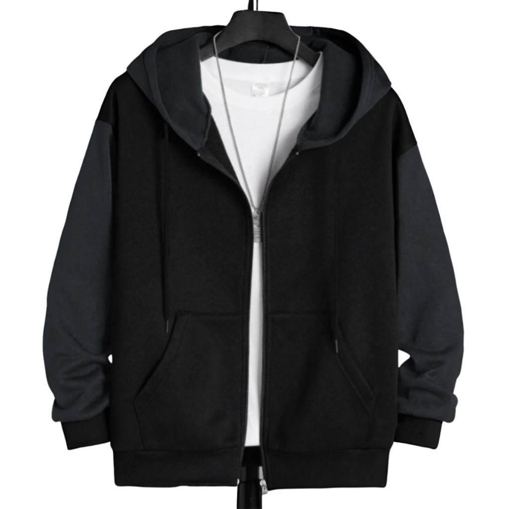 Blusa Moletom Masculino Com Capuz e Ziper Bolso Canguru 2 Cores Estilo Casual Liso