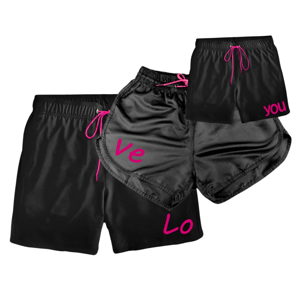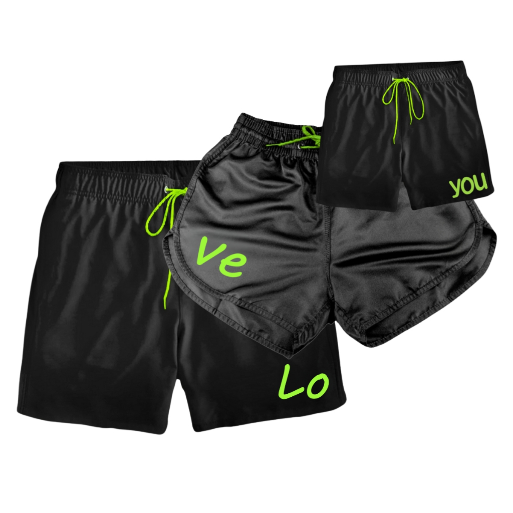 Kit Familia Shorts Tactel Moda Praia Iguais Combinando Cordão E Estampa Na Mesma Cor