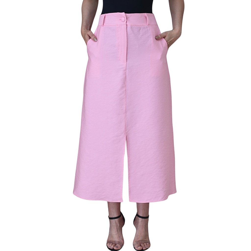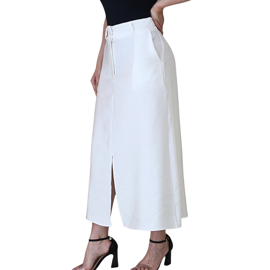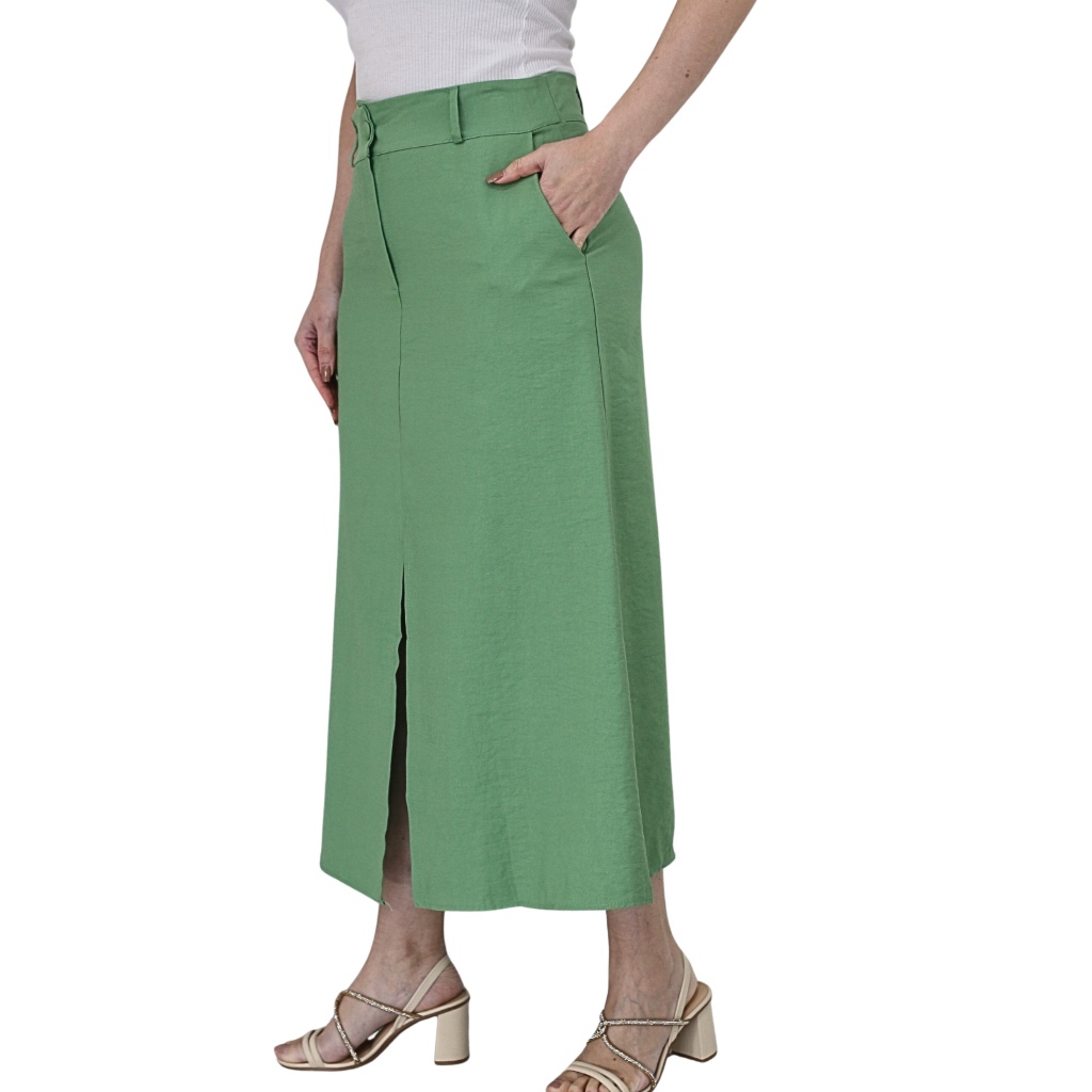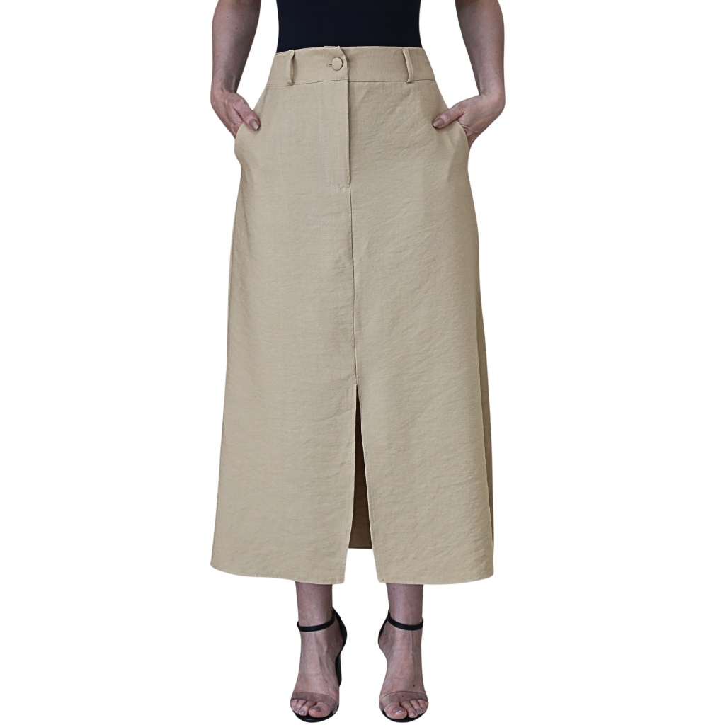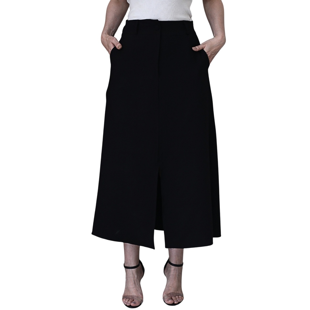 Saia Midi Feminina Marrant Cintura Alta com Fenda e Bolsos Elegante Alfaiataria