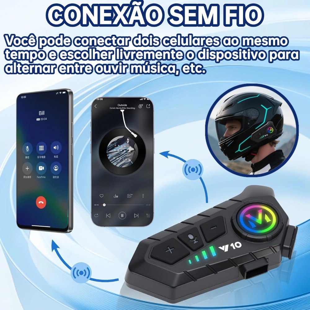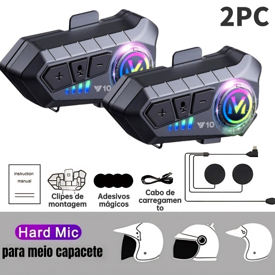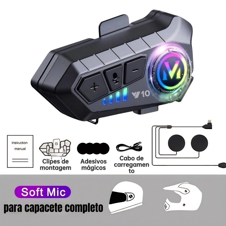 NOVA Y10 Fone De Capacete Com Luz Ambiente Bluetooth 5.3 Para Capacete Ipx6 À Prova D'água Para