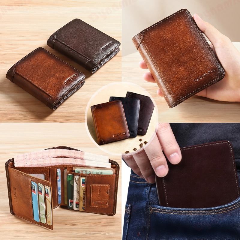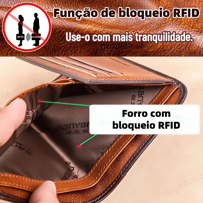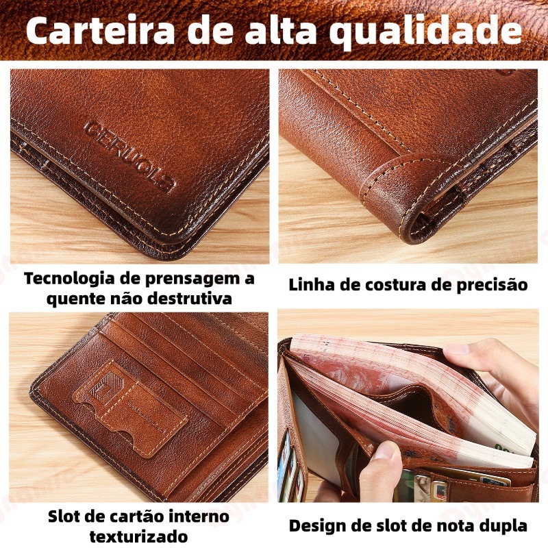 Carteira Antifurto Masculina De Couro Legítimo Vintage De Bifold À Escolha-DY