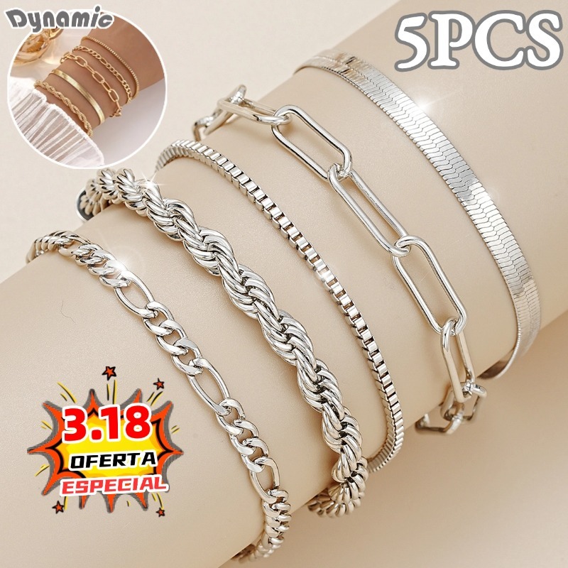 5 pcs pulseiras em aço inoxidável hipoalergênico não escurece a prova d’água