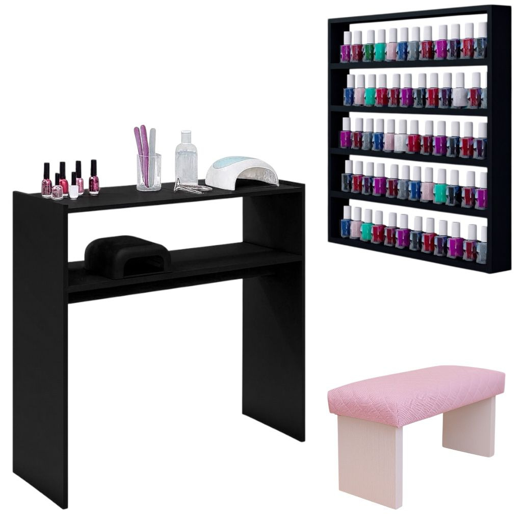Kit Mesa Para Manicure + Porta Esmaltes + Apoio De Punho Completo Profissional Nail Designer Pedicure Unhagel
