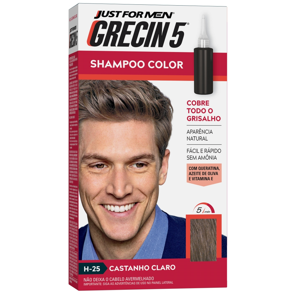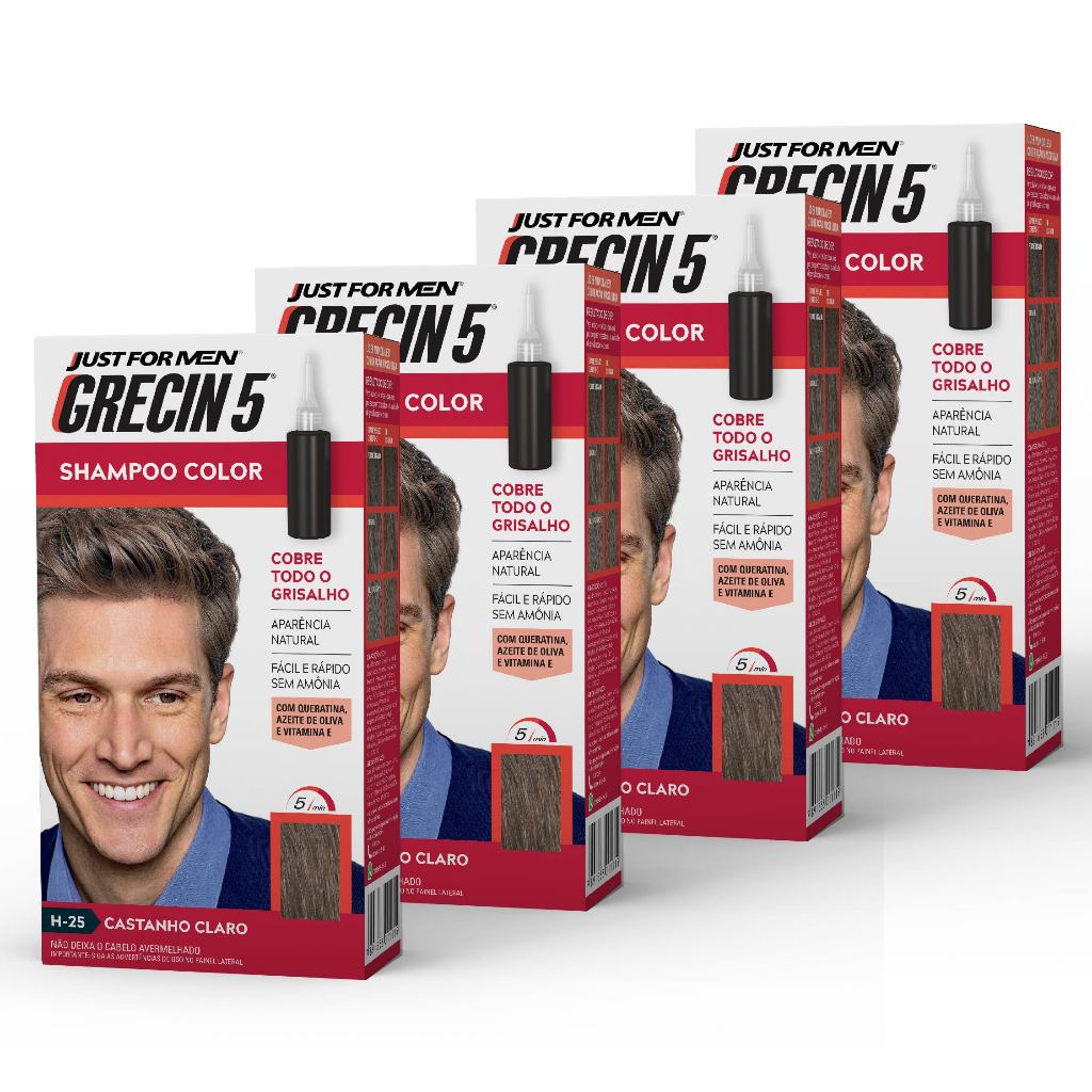 Kit 4x unidades Grecin 5 Shampoo Tintura Tonalizante Castanho Claro H-25 60ml - Cobre os cabelos grisalhos em 5 minutos