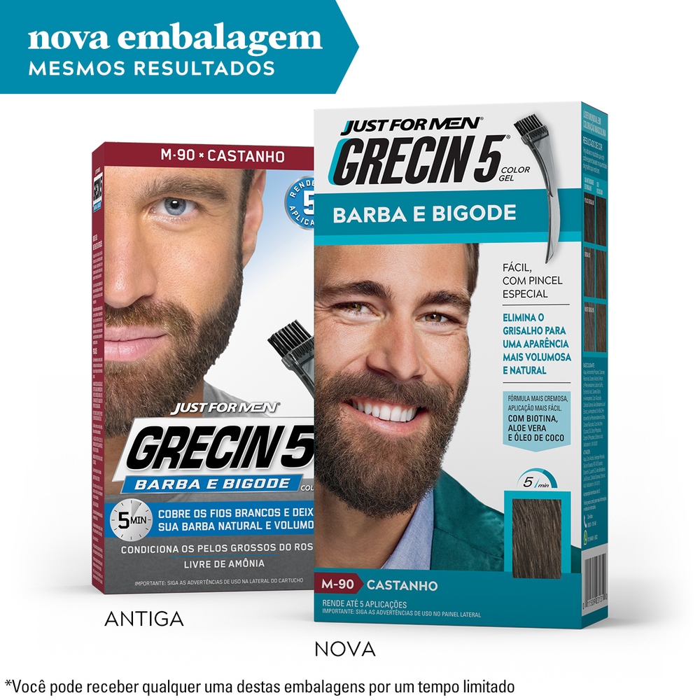 Kit 6x unidades Grecin 5 Color Gel Barba e Bigode Castanho M-90 - Cobre os fios grisalhos 5 minutos. Aparência natural.