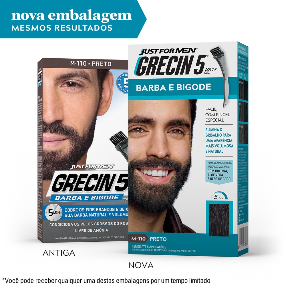 Kit 2x unidades Grecin 5 Color Gel TIntura Tonalizante Barba e Bigode Preto M-110 - Cobre os fios grisalhos em 5 minutos
