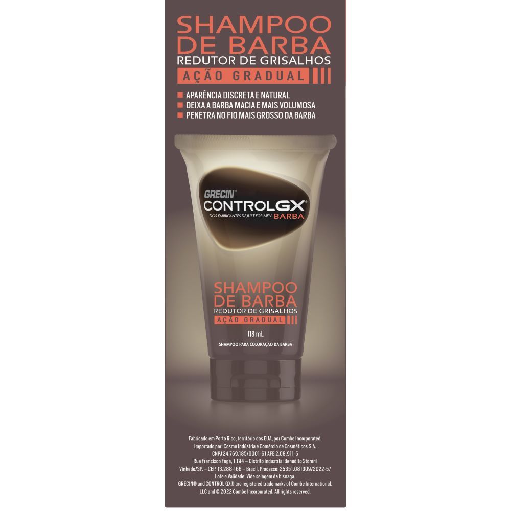 Kit 3x unidades Grecin Control Gx Shampoo De Barba e Redutor Grisalhos - Para todos os tipos de barba. Aparência jovem